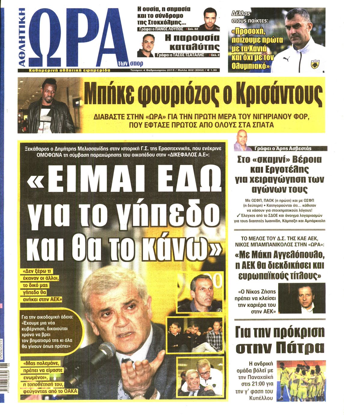 Τετάρτη 4 Φεβρουαρίου 2015