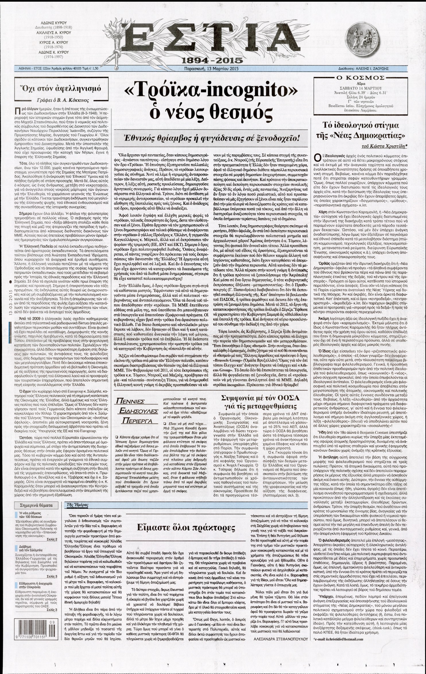 Παρασκευή 13 Μαρτίου 2015