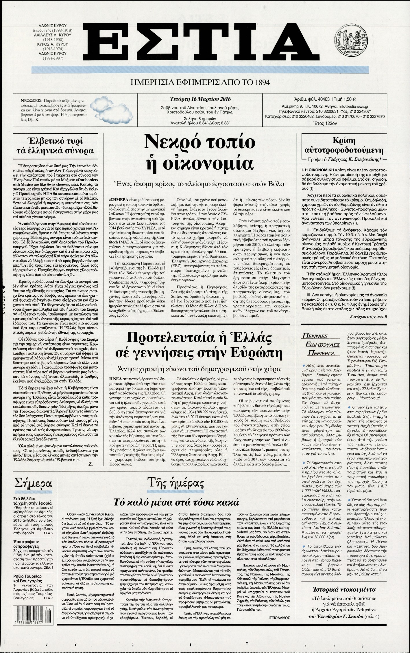 Τετάρτη 16 Μαρτίου 2016