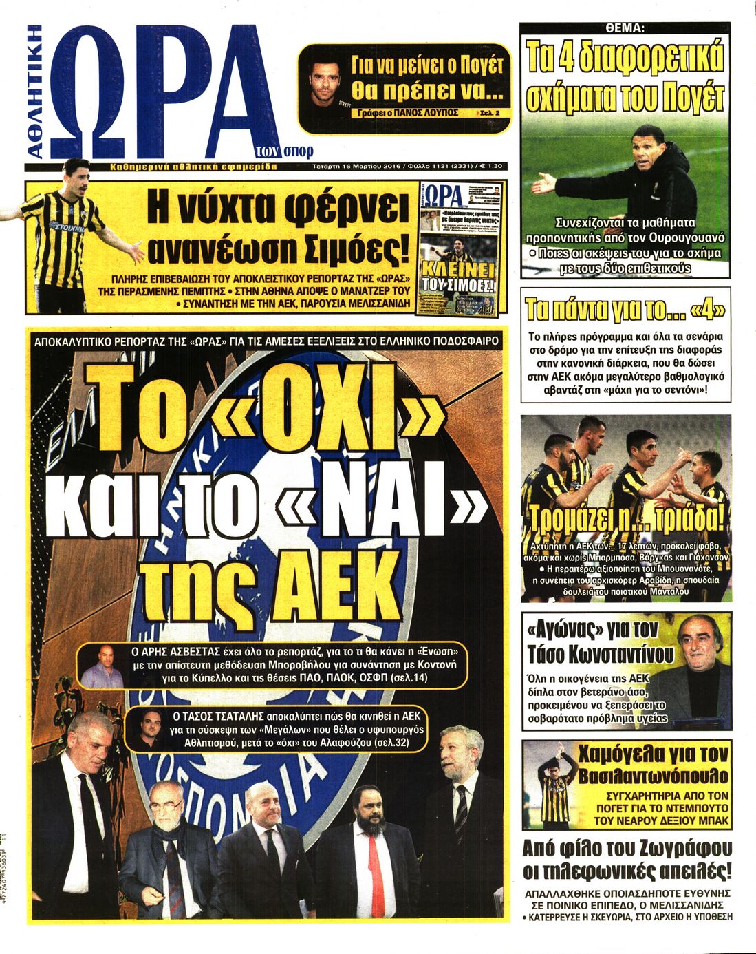 Τετάρτη 16 Μαρτίου 2016