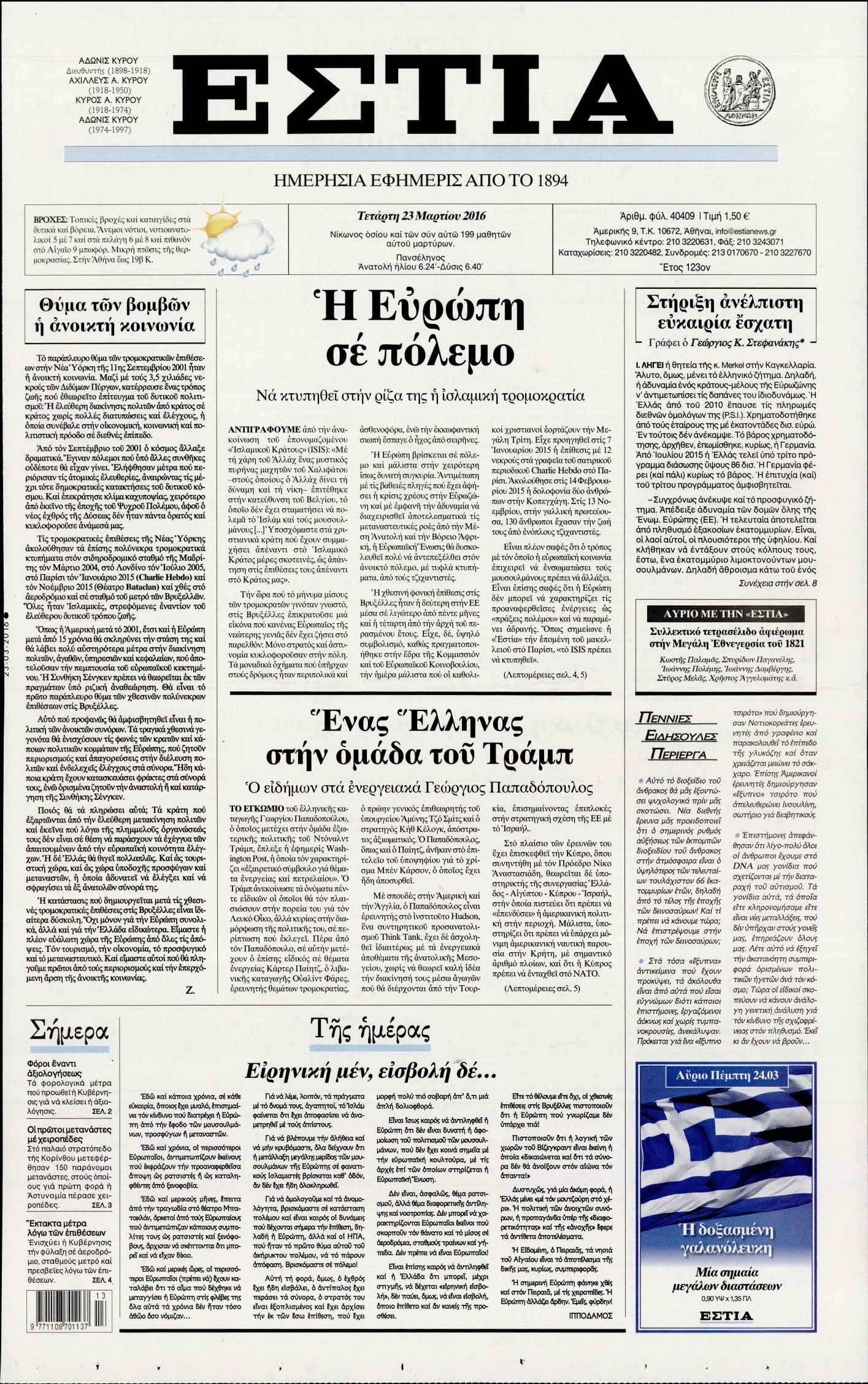 Τετάρτη 23 Μαρτίου 2016