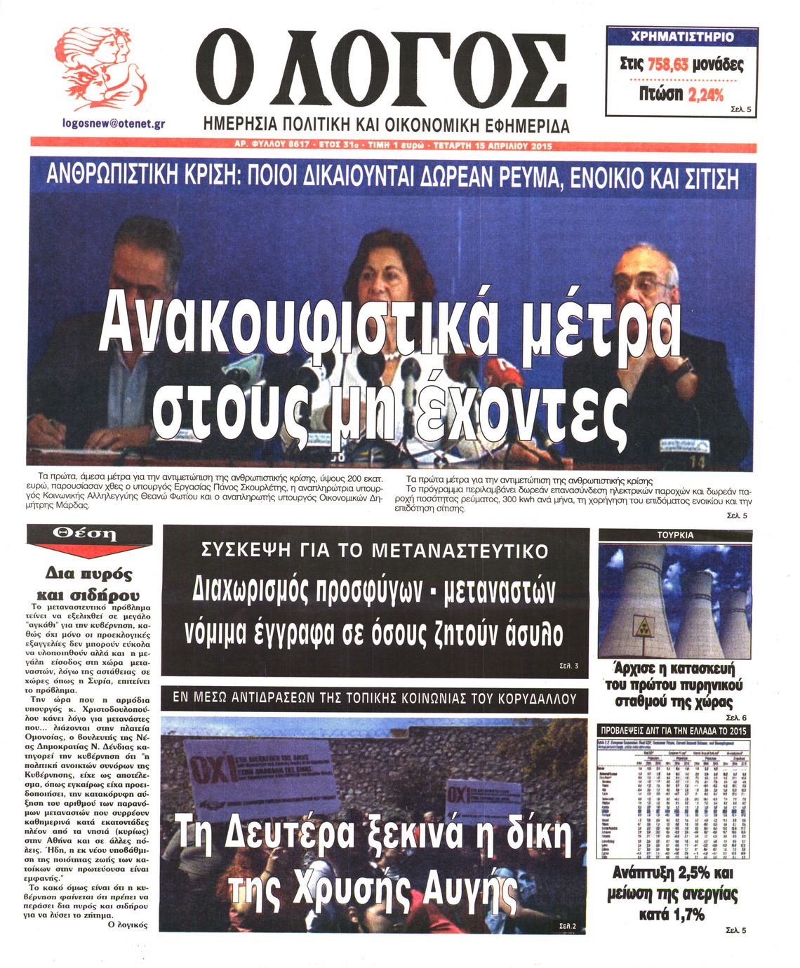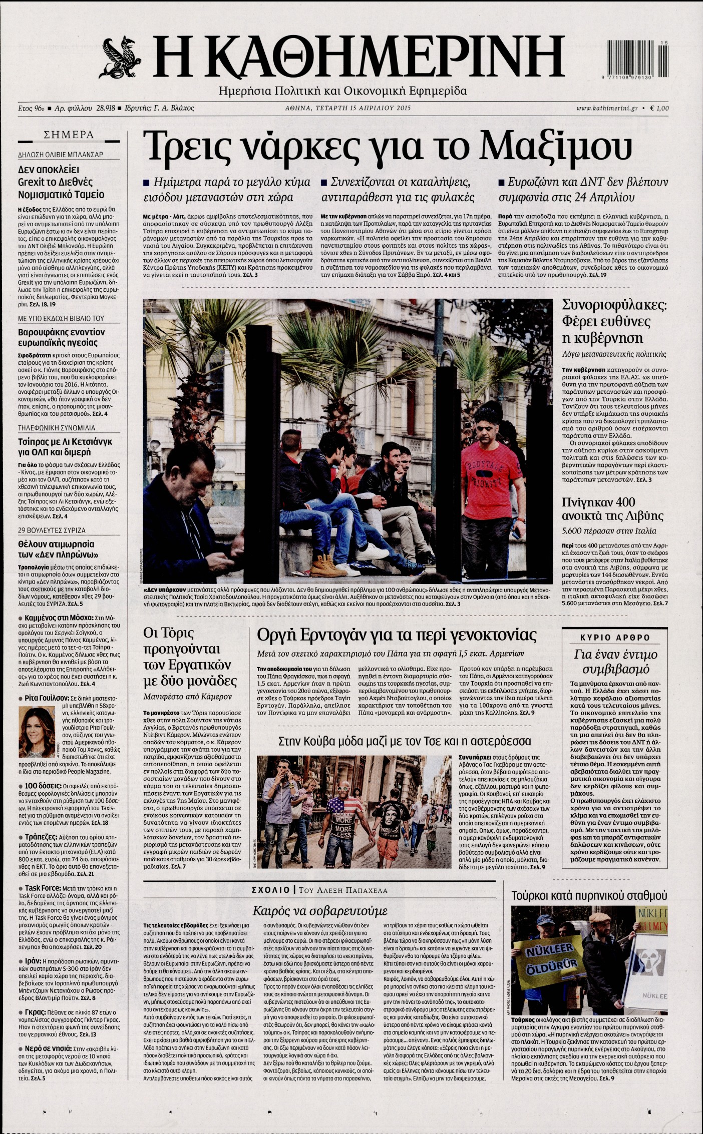 Τετάρτη 15 Απριλίου 2015