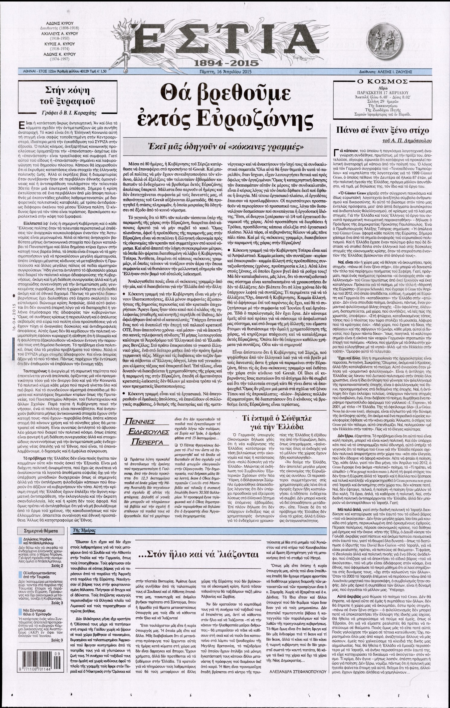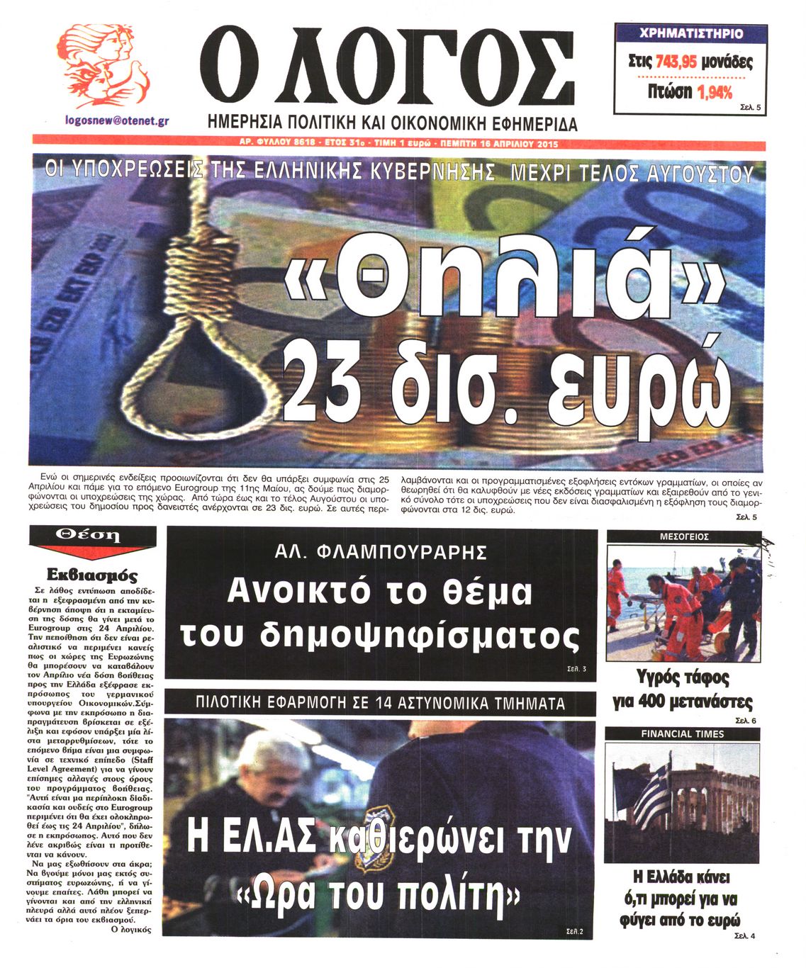 Πέμπτη 16 Απριλίου 2015