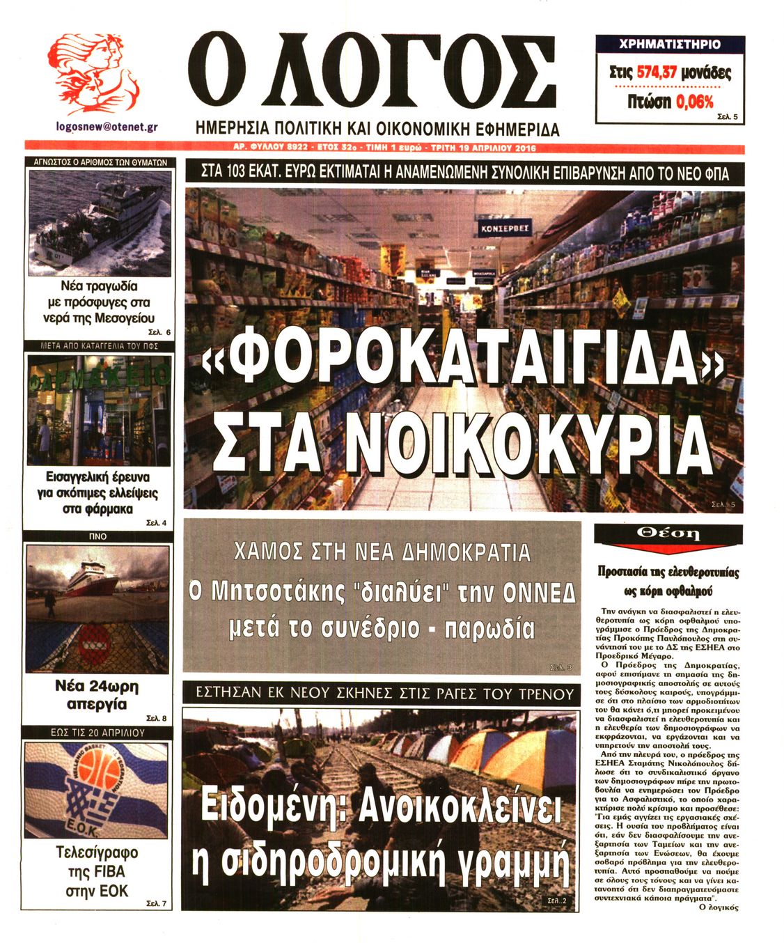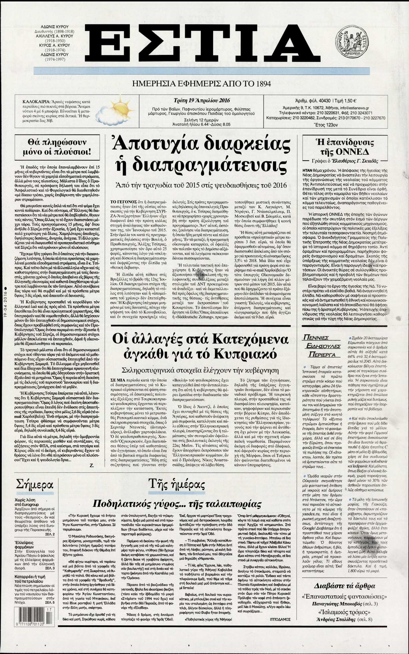 Τρίτη 19 Απριλίου 2016