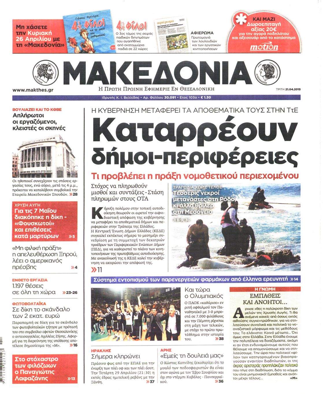 Τρίτη 21 Απριλίου 2015