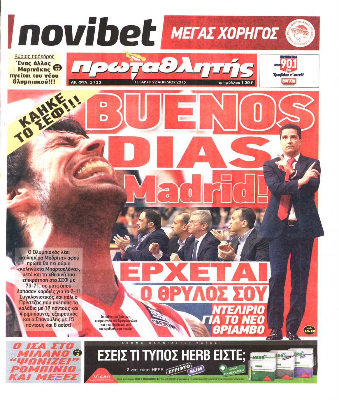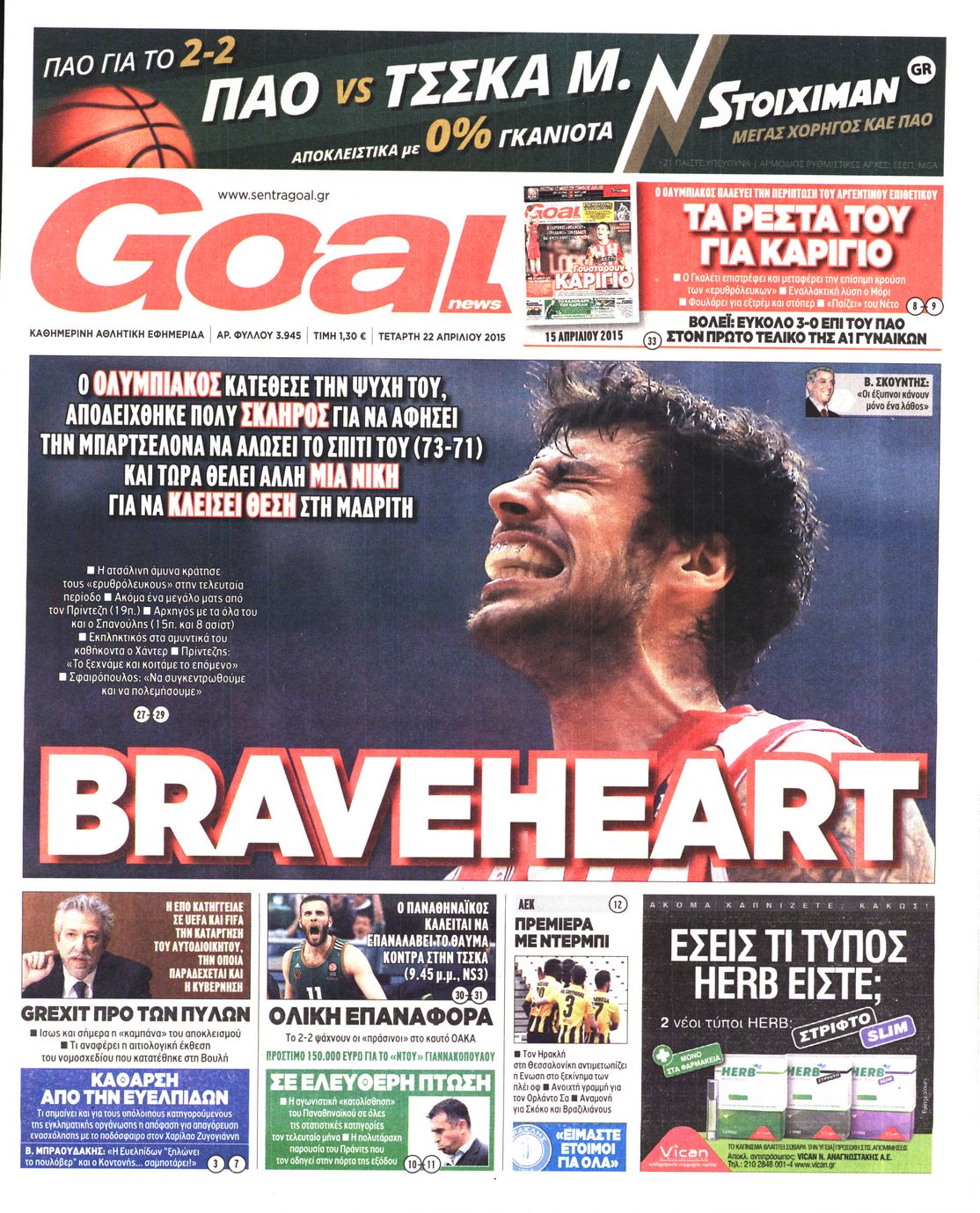 Τετάρτη 22 Απριλίου 2015