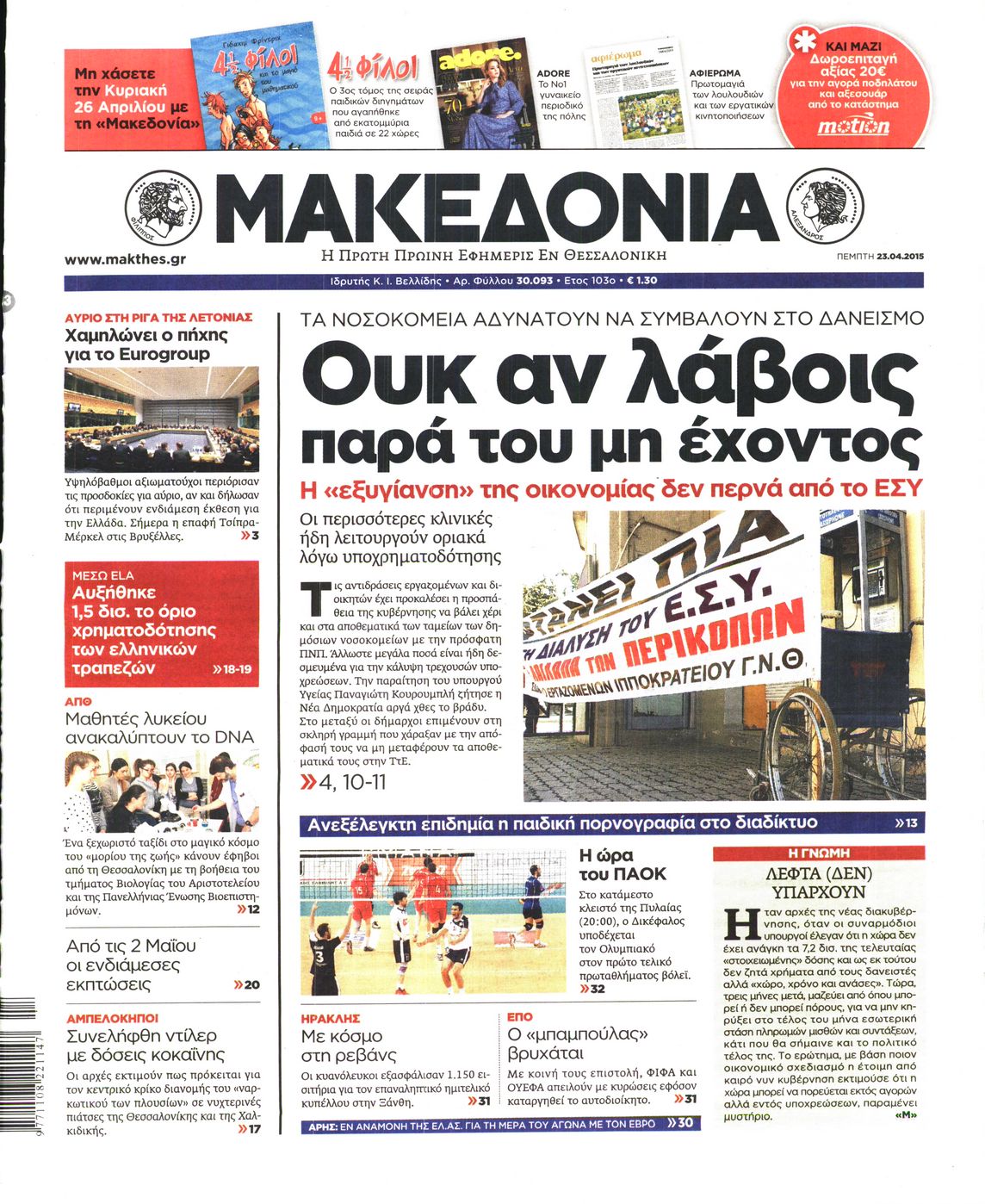 Πέμπτη 23 Απριλίου 2015
