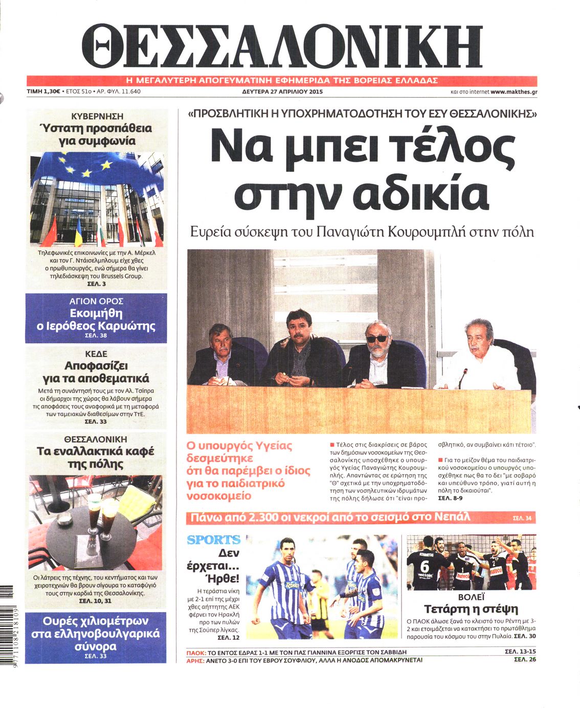 Δευτέρα 27 Απριλίου 2015