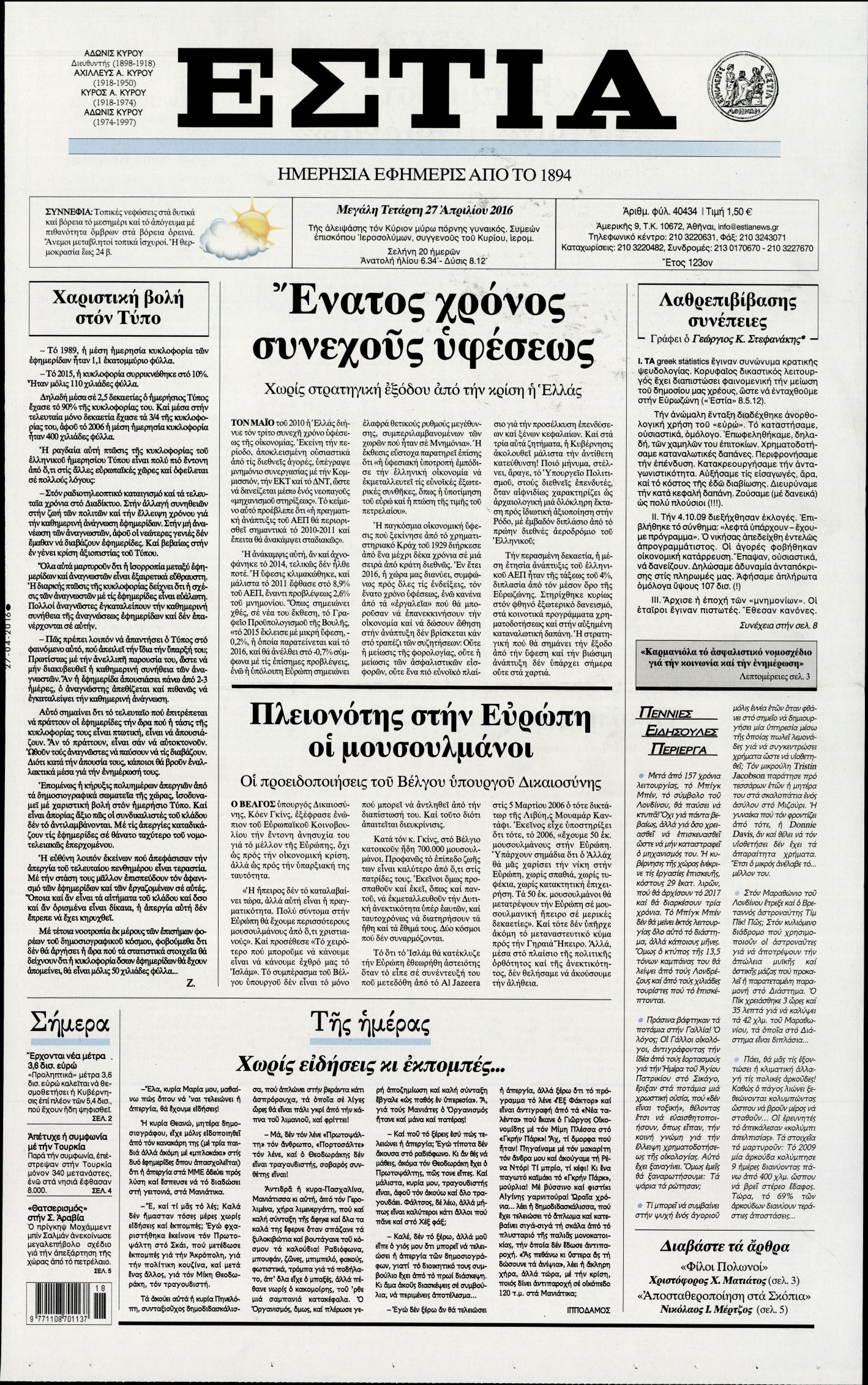 Τετάρτη 27 Απριλίου 2016