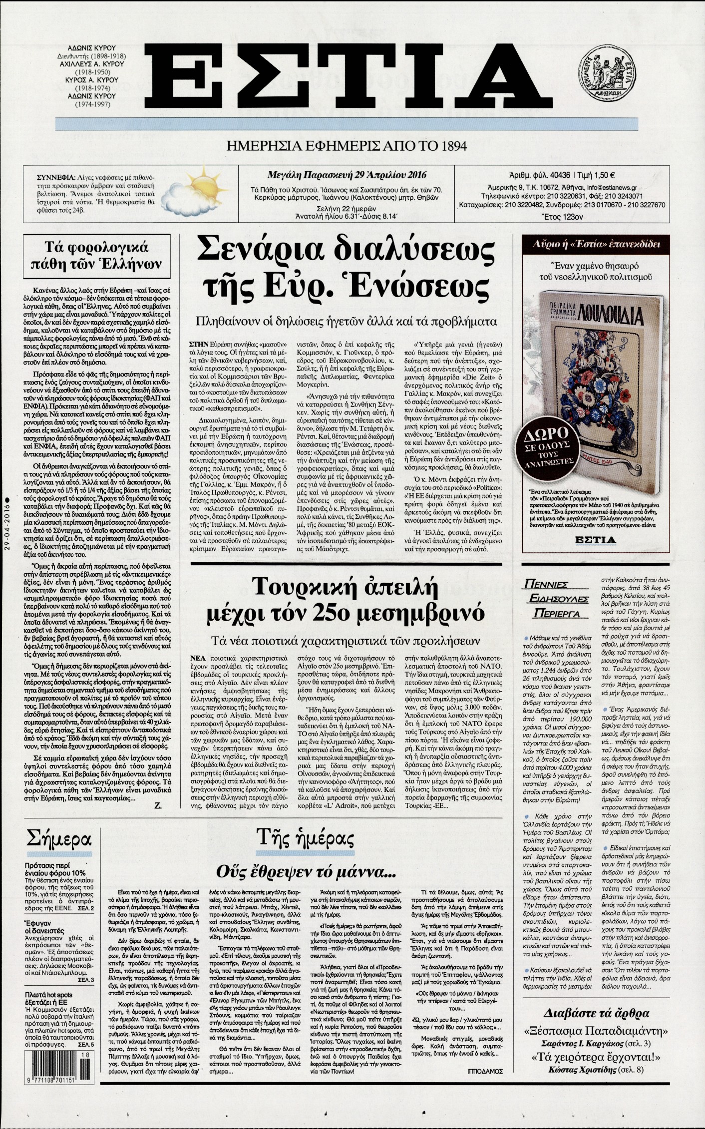 Παρασκευή 29 Απριλίου 2016