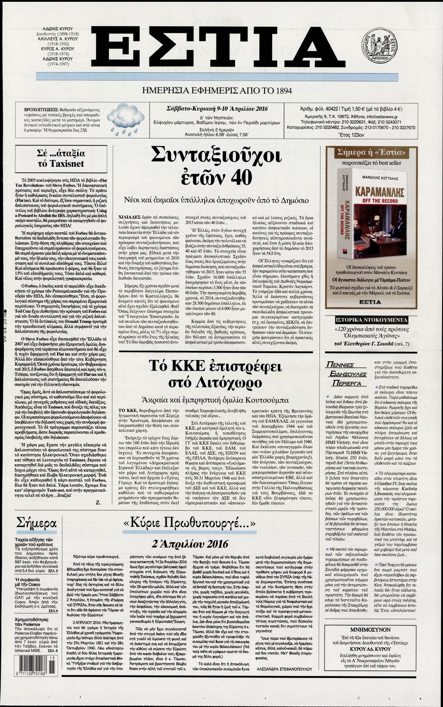 Σάββατο 9 Απριλίου 2016