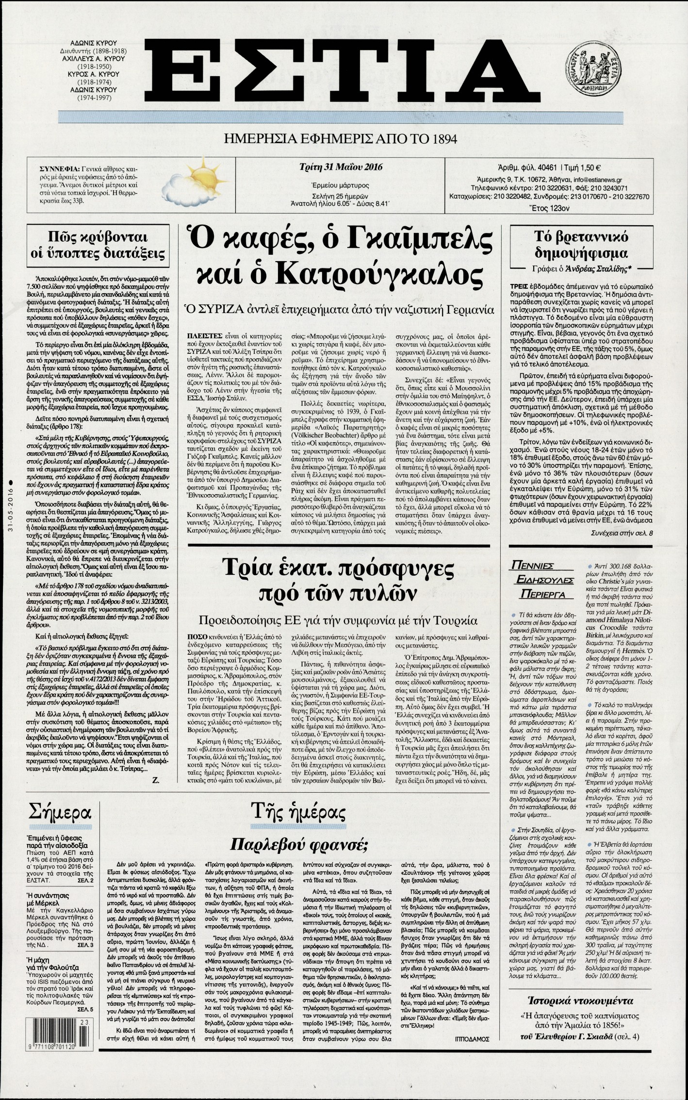 Τρίτη 31 Μαΐου 2016