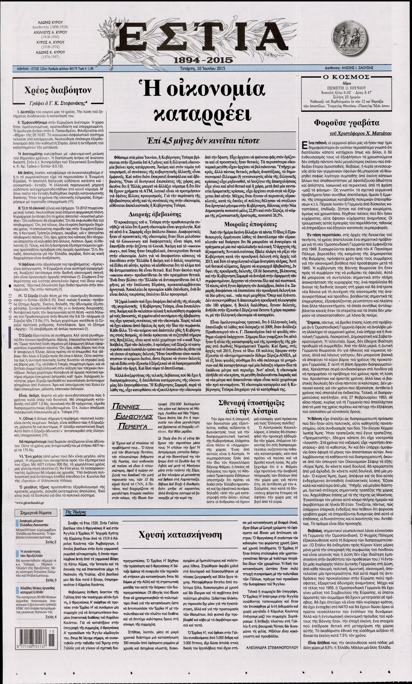 Τετάρτη 10 Ιουνίου 2015