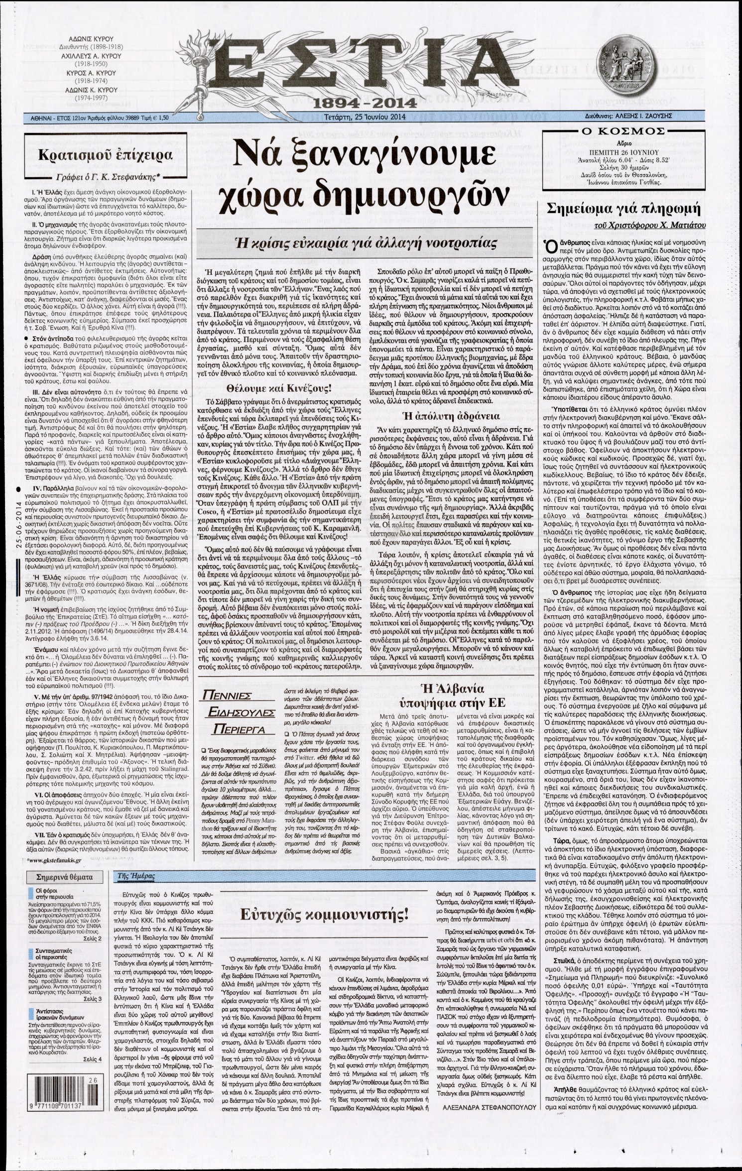 Τετάρτη 25 Ιουνίου 2014