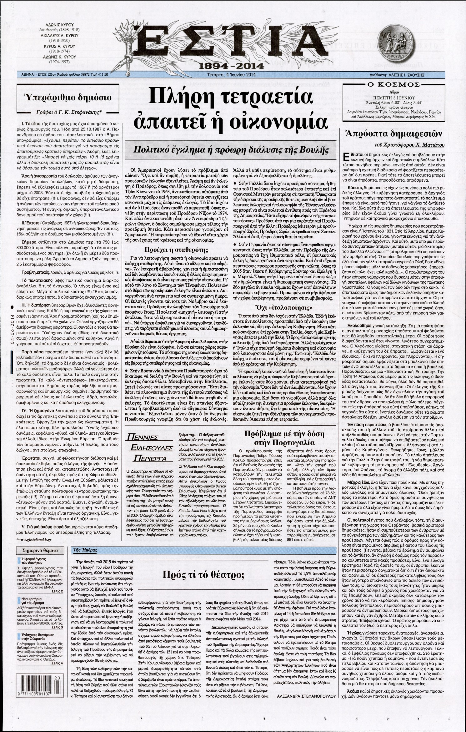 Τετάρτη 4 Ιουνίου 2014