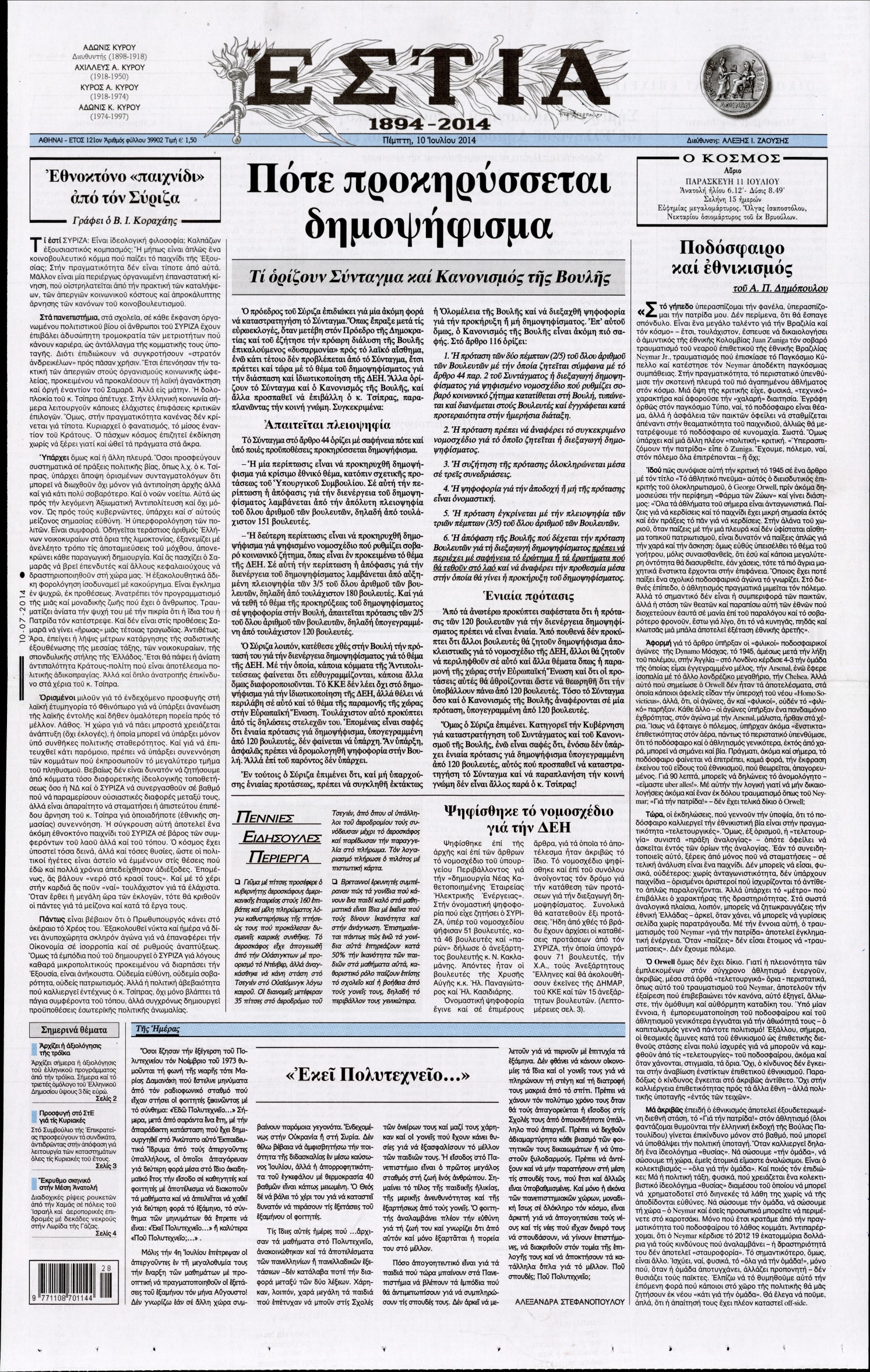 Πέμπτη 10 Ιουλίου 2014
