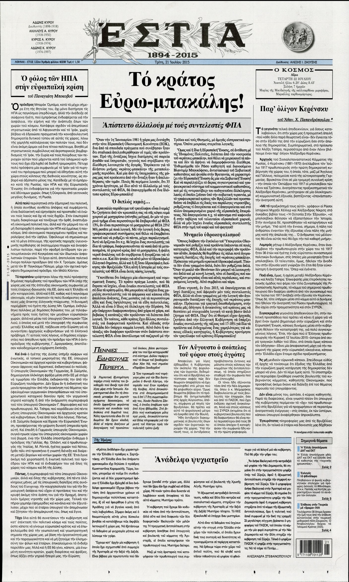 Τρίτη 21 Ιουλίου 2015