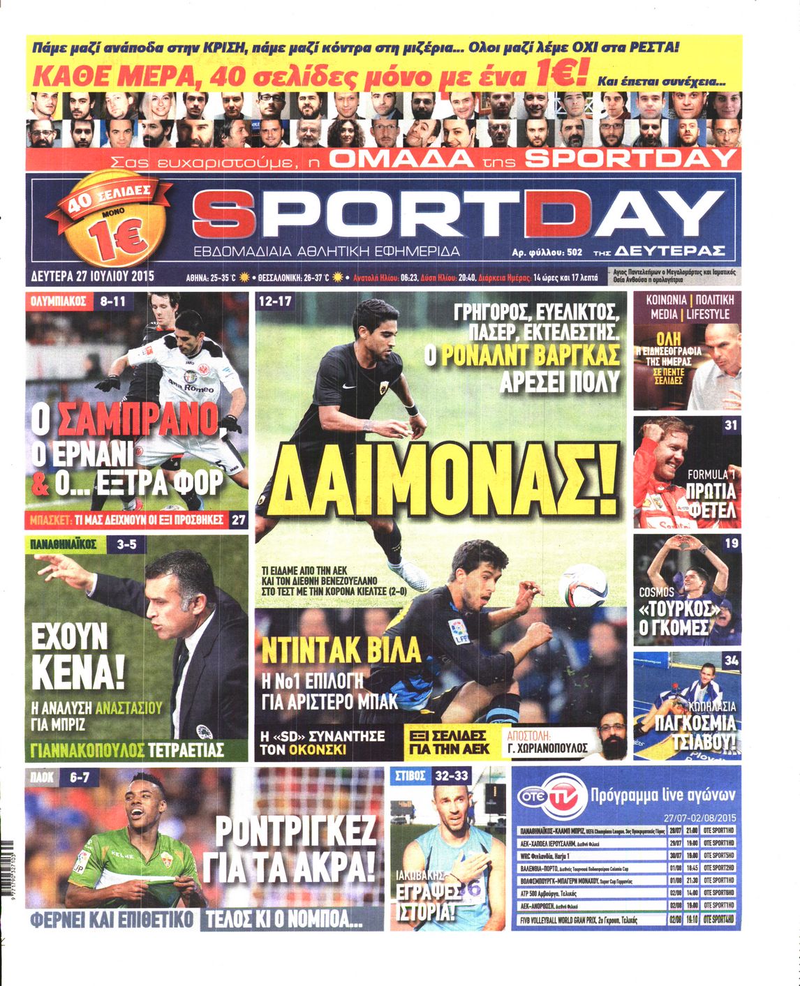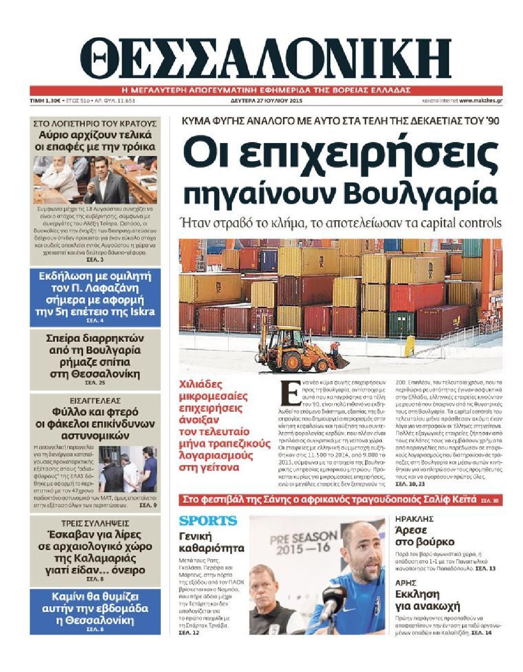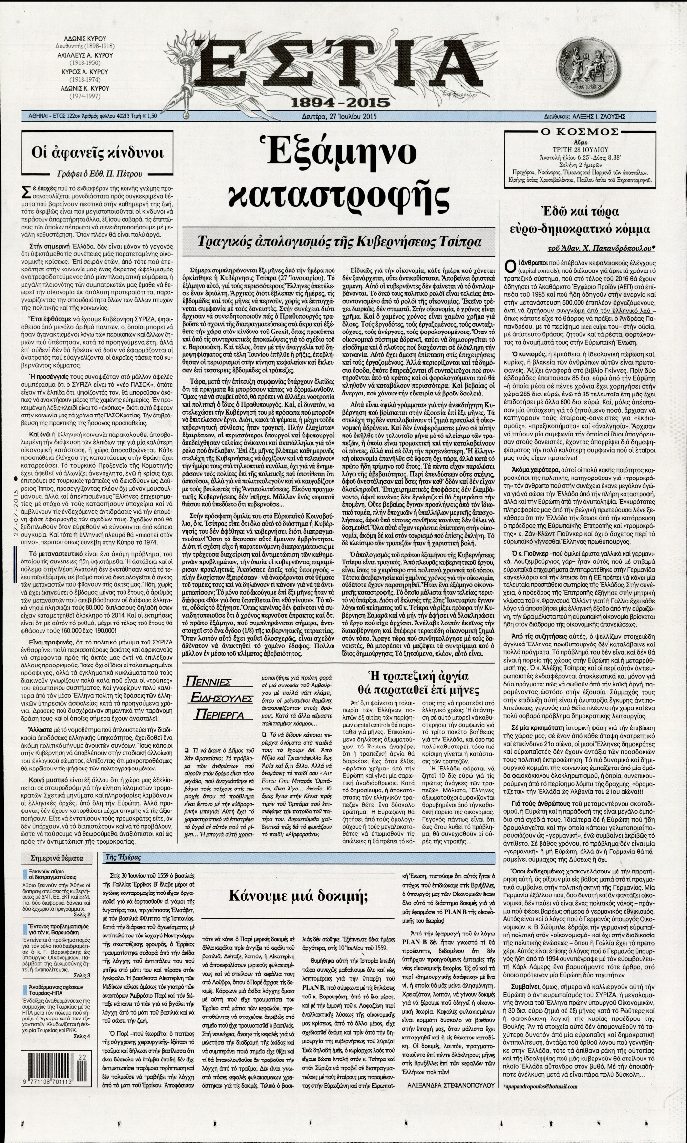 Δευτέρα 27 Ιουλίου 2015