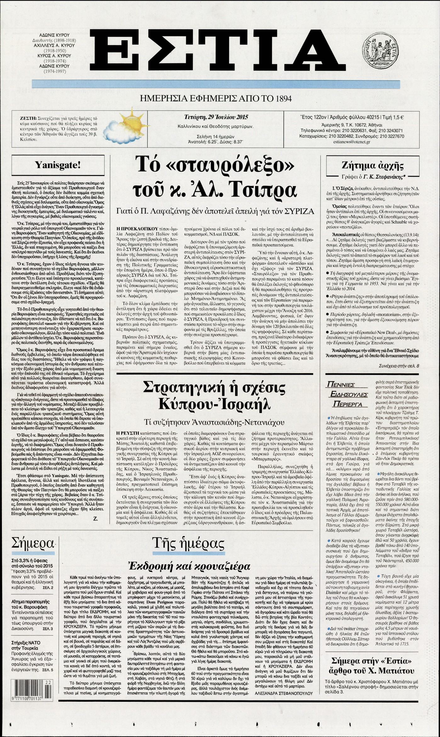 Τετάρτη 29 Ιουλίου 2015