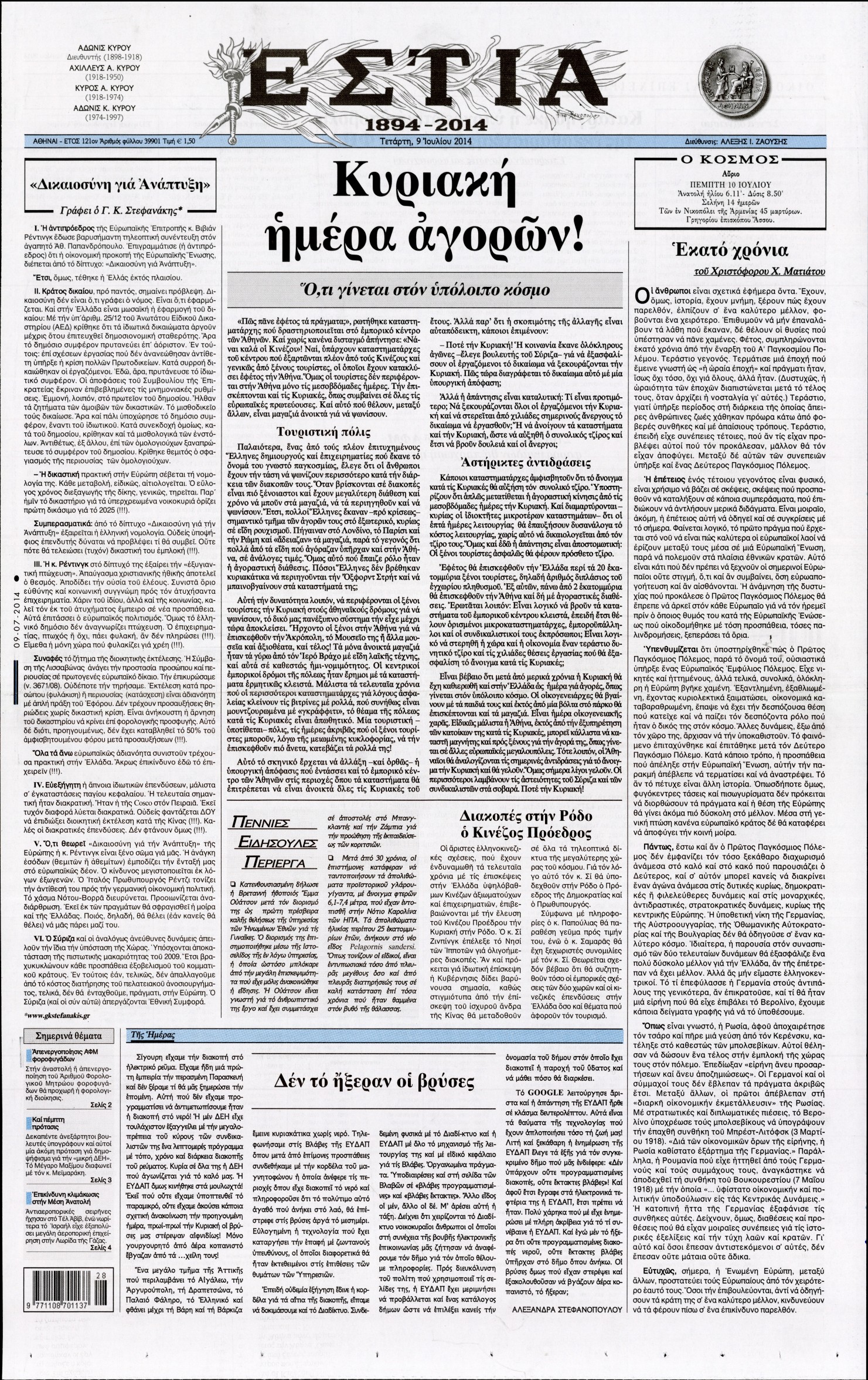 Τετάρτη 9 Ιουλίου 2014