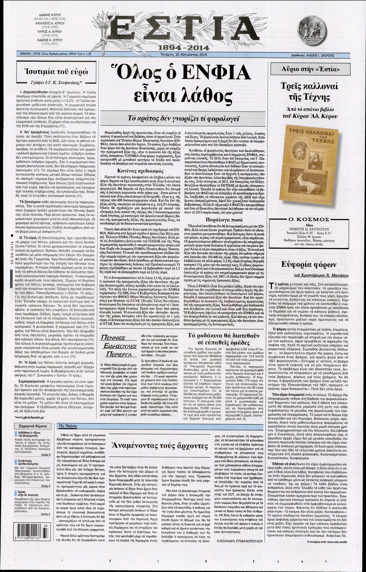 Τετάρτη 20 Αυγούστου 2014