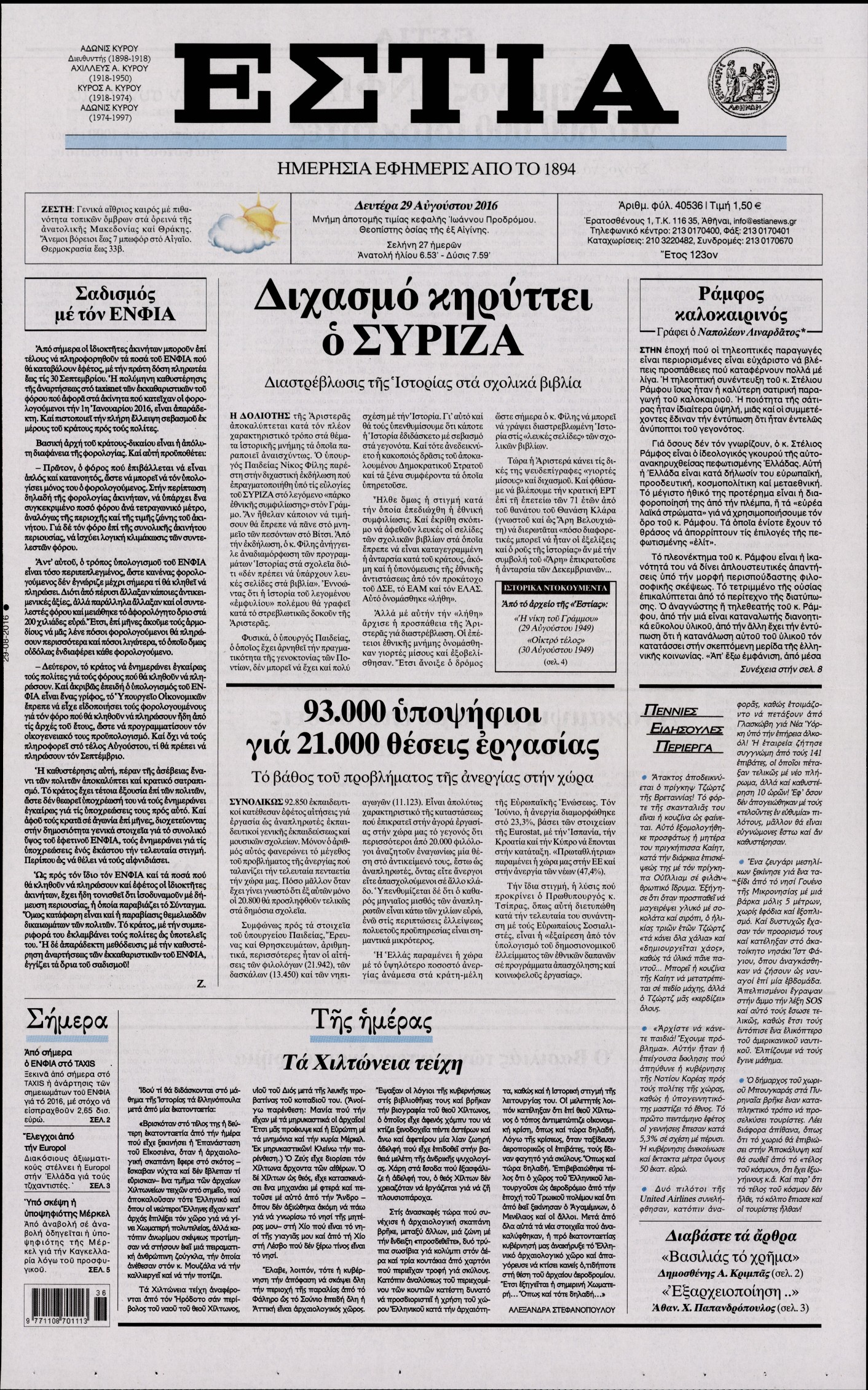 Δευτέρα 29 Αυγούστου 2016