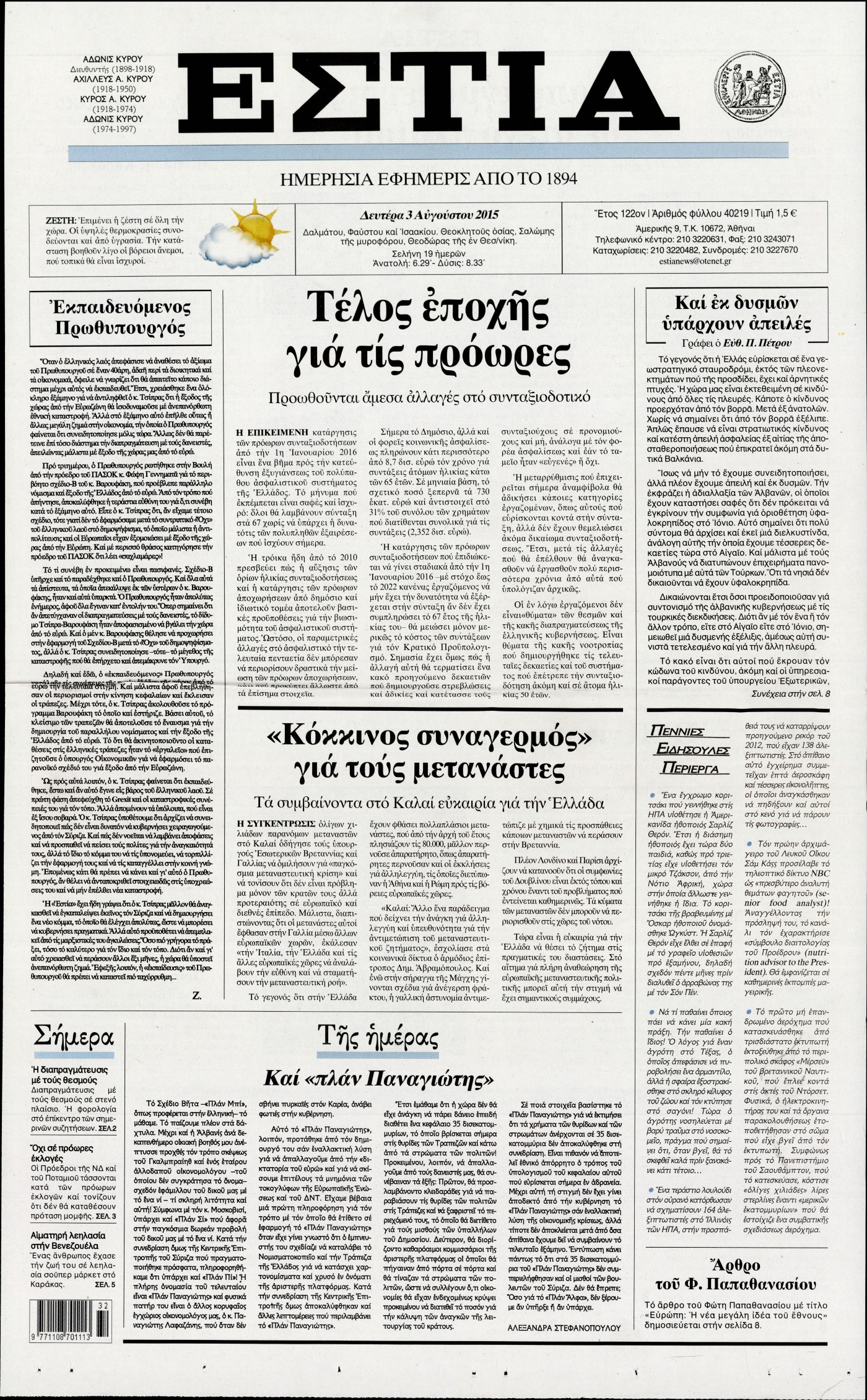 Δευτέρα 3 Αυγούστου 2015