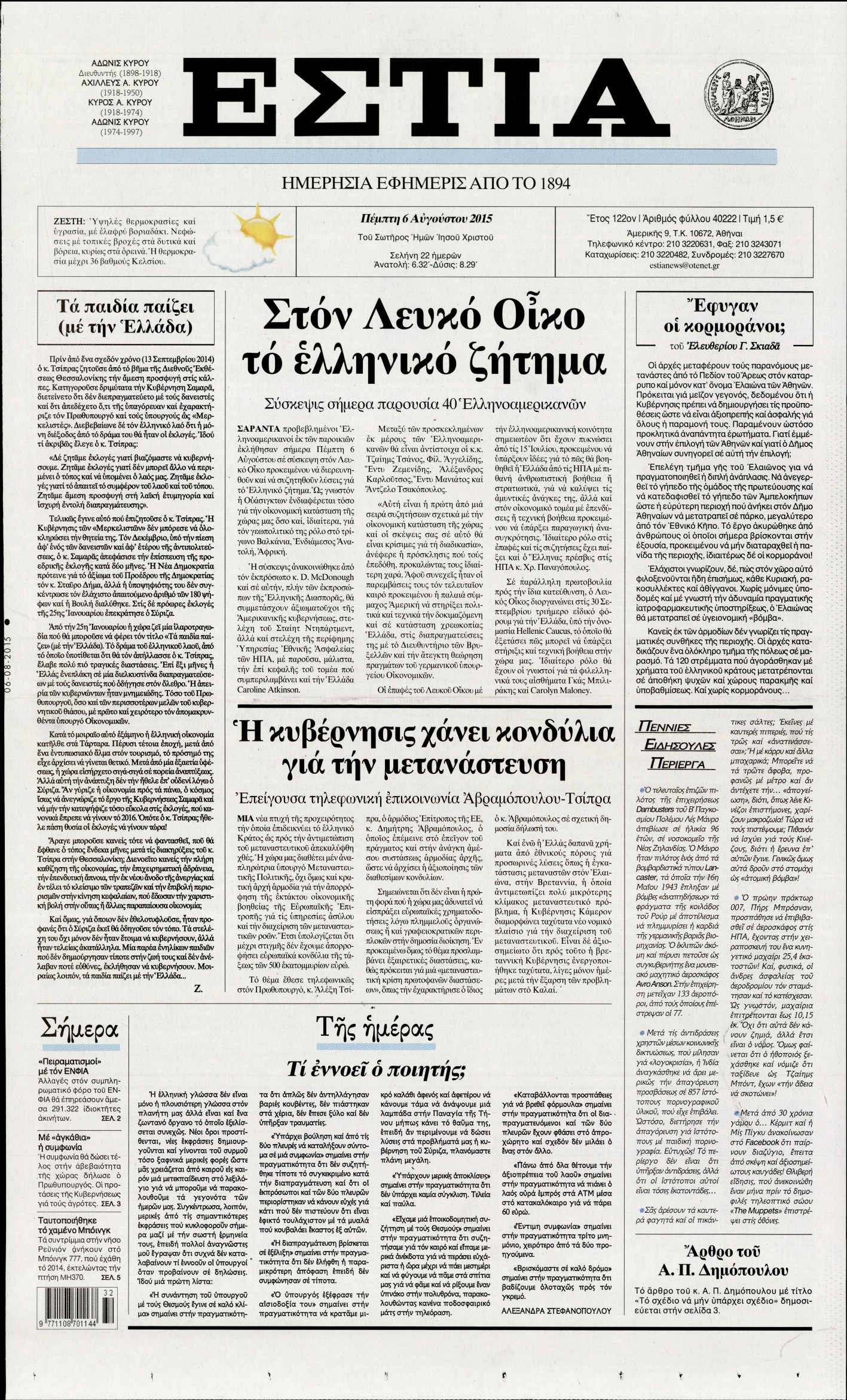 Πέμπτη 6 Αυγούστου 2015