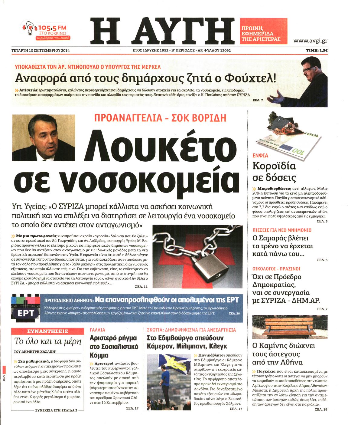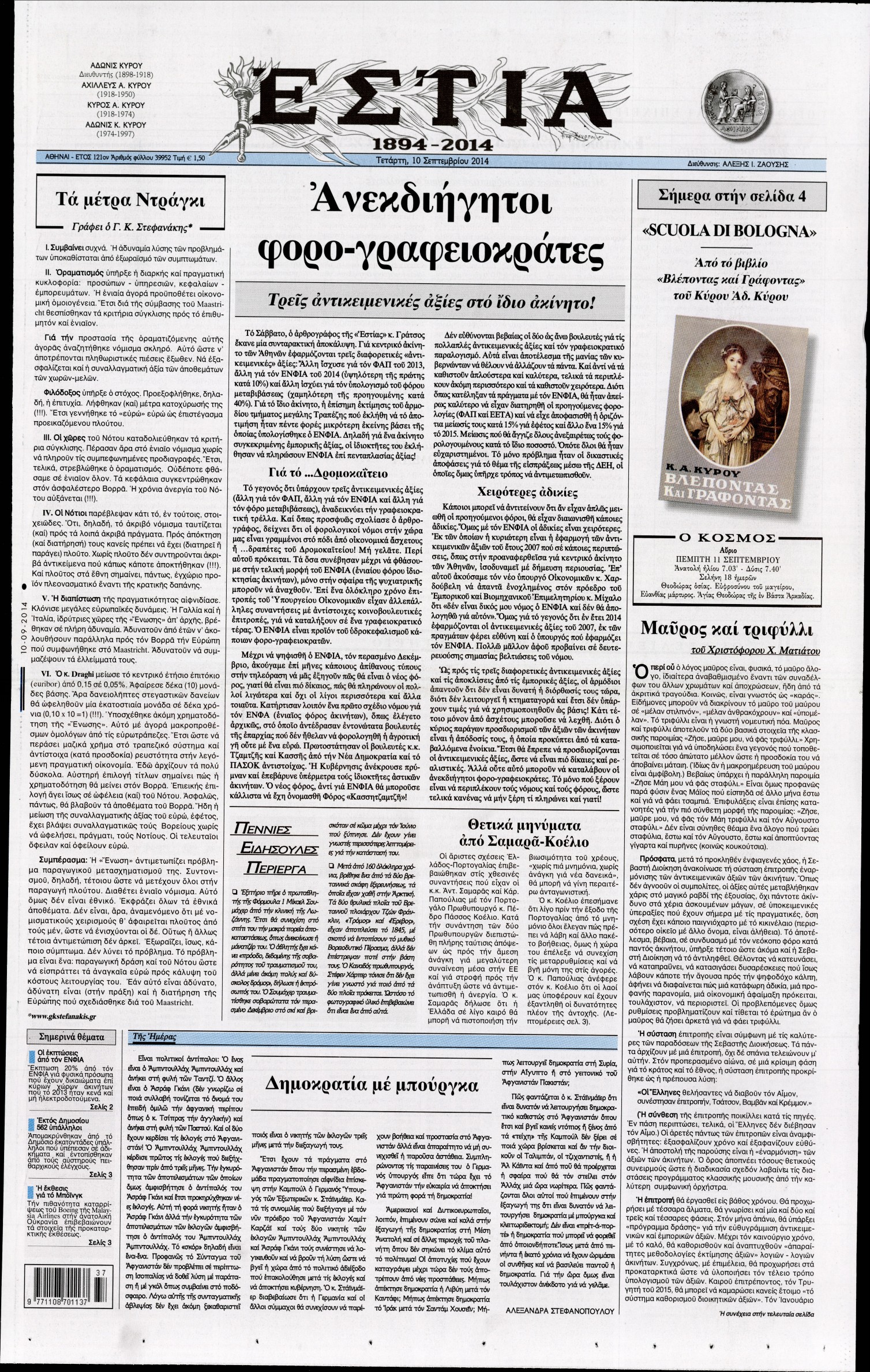 Τετάρτη 10 Σεπτεμβρίου 2014