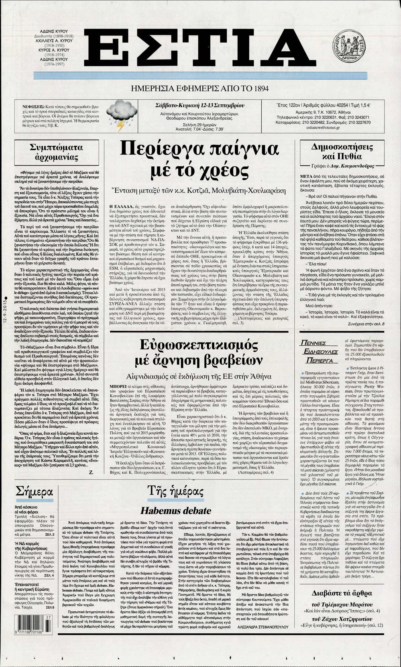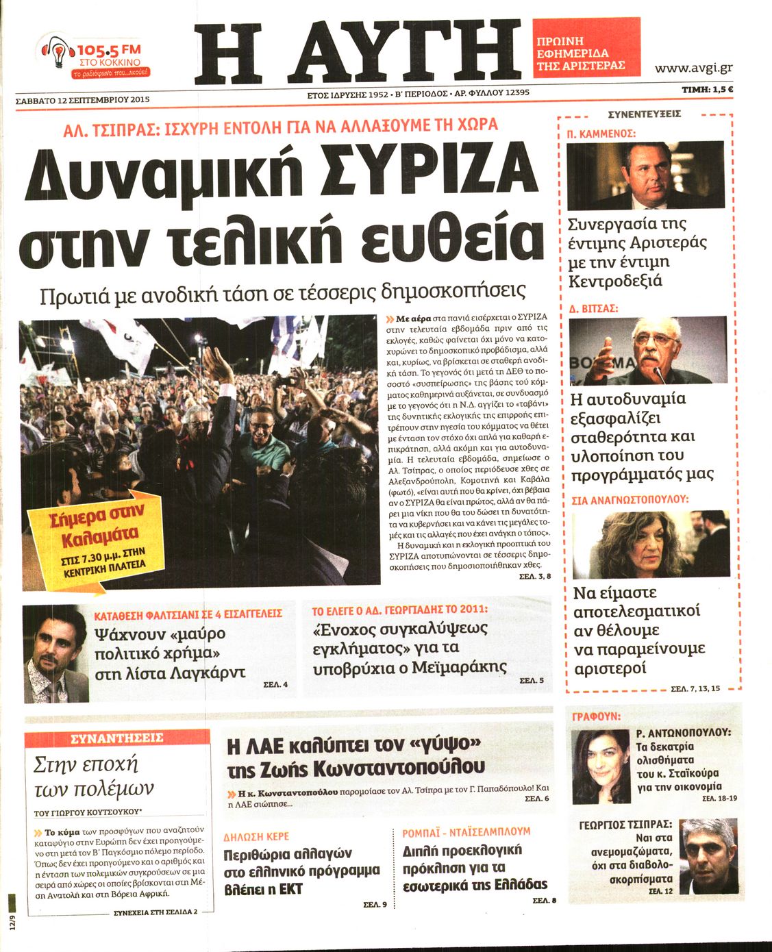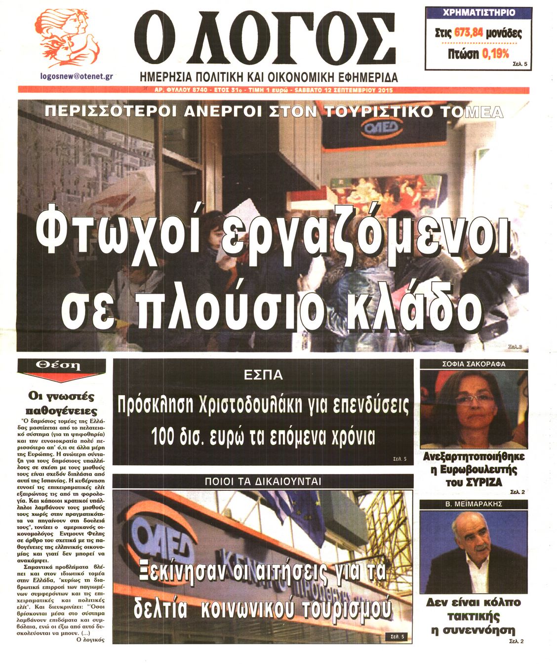 Σάββατο 12 Σεπτεμβρίου 2015
