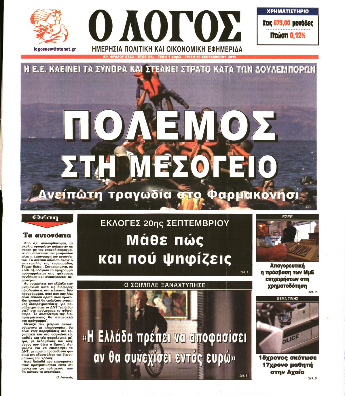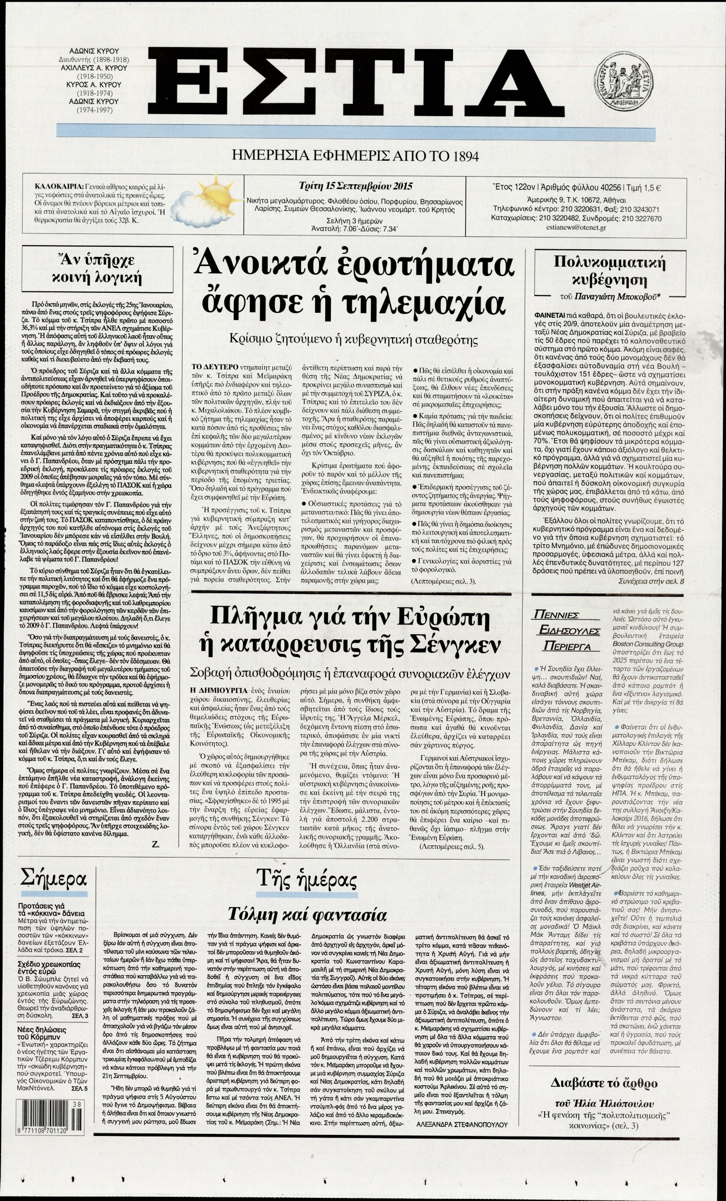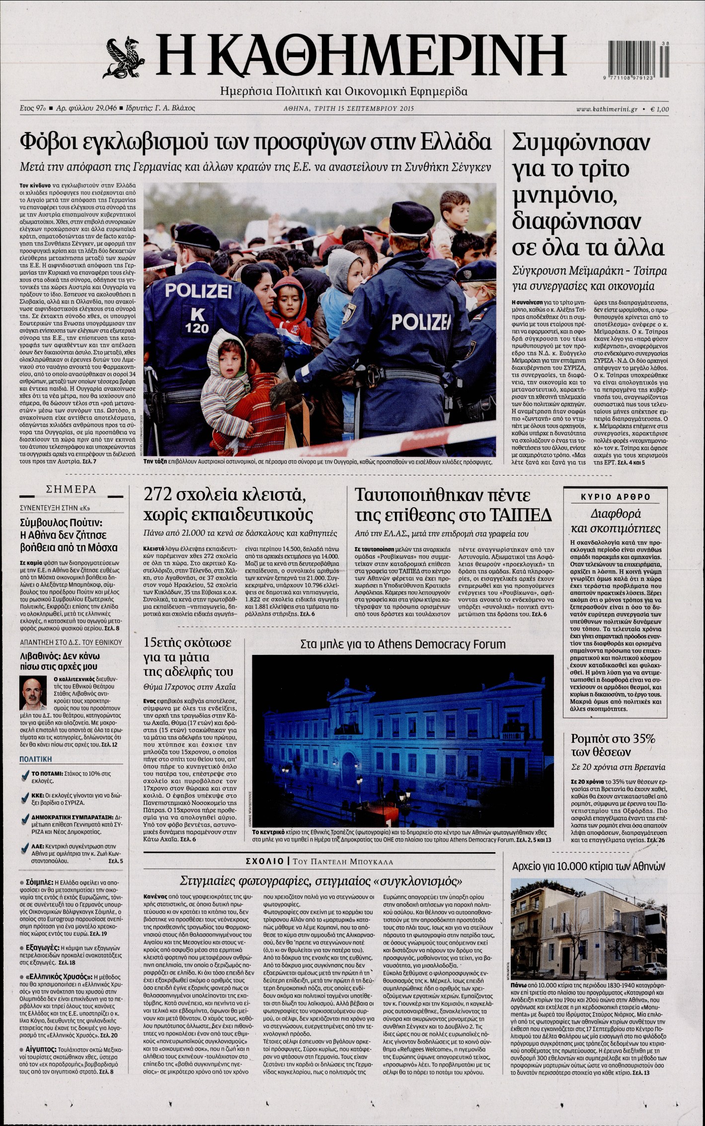 Τρίτη 15 Σεπτεμβρίου 2015
