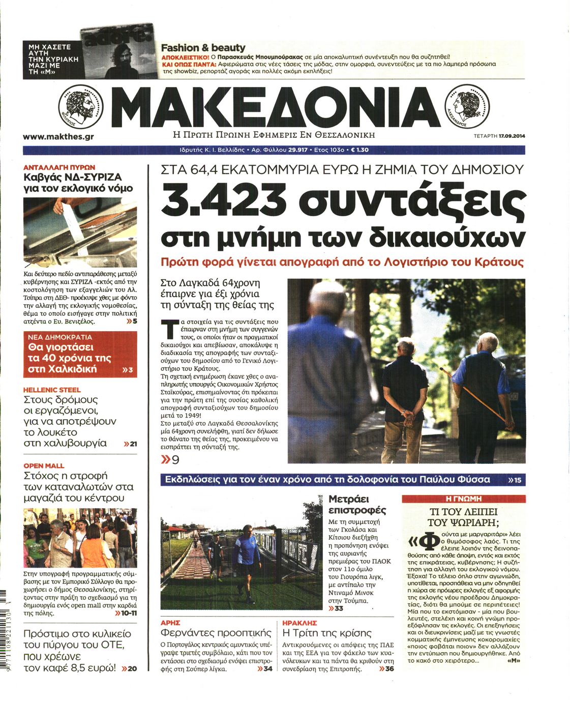 Τετάρτη 17 Σεπτεμβρίου 2014
