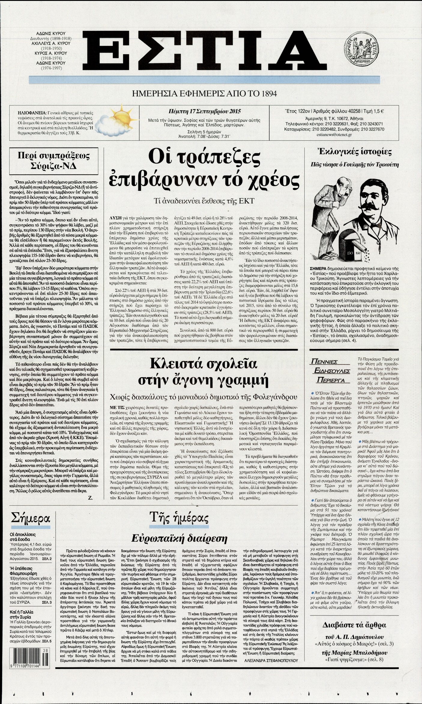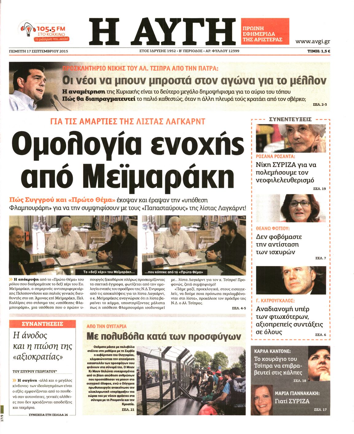Πέμπτη 17 Σεπτεμβρίου 2015