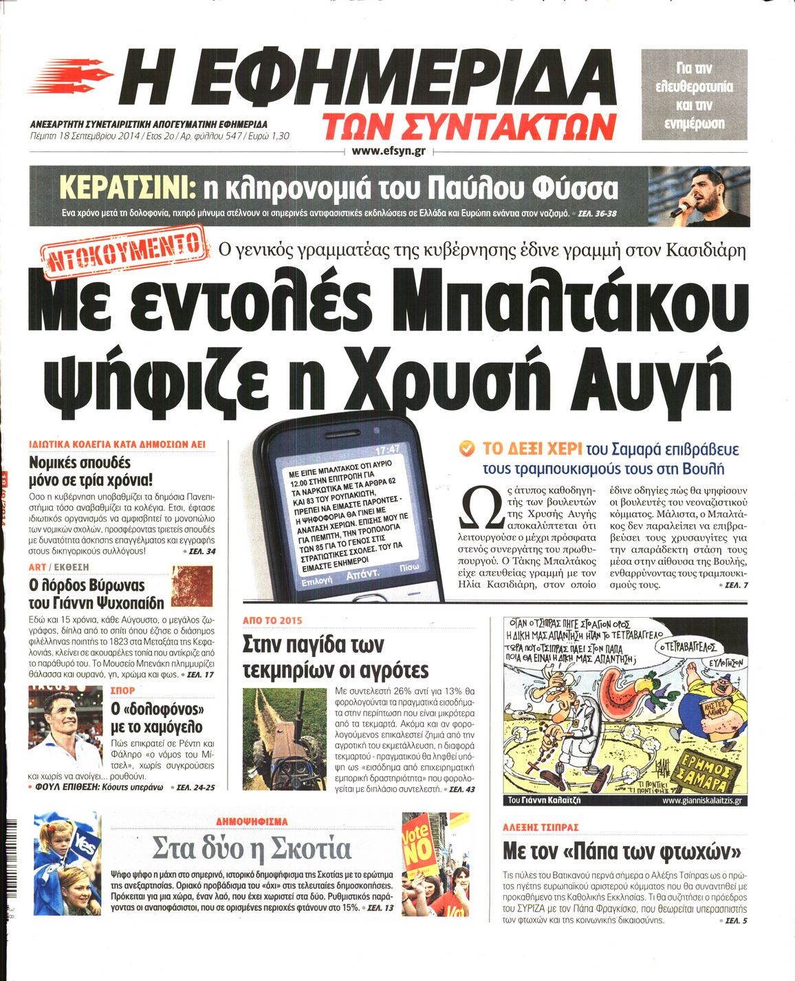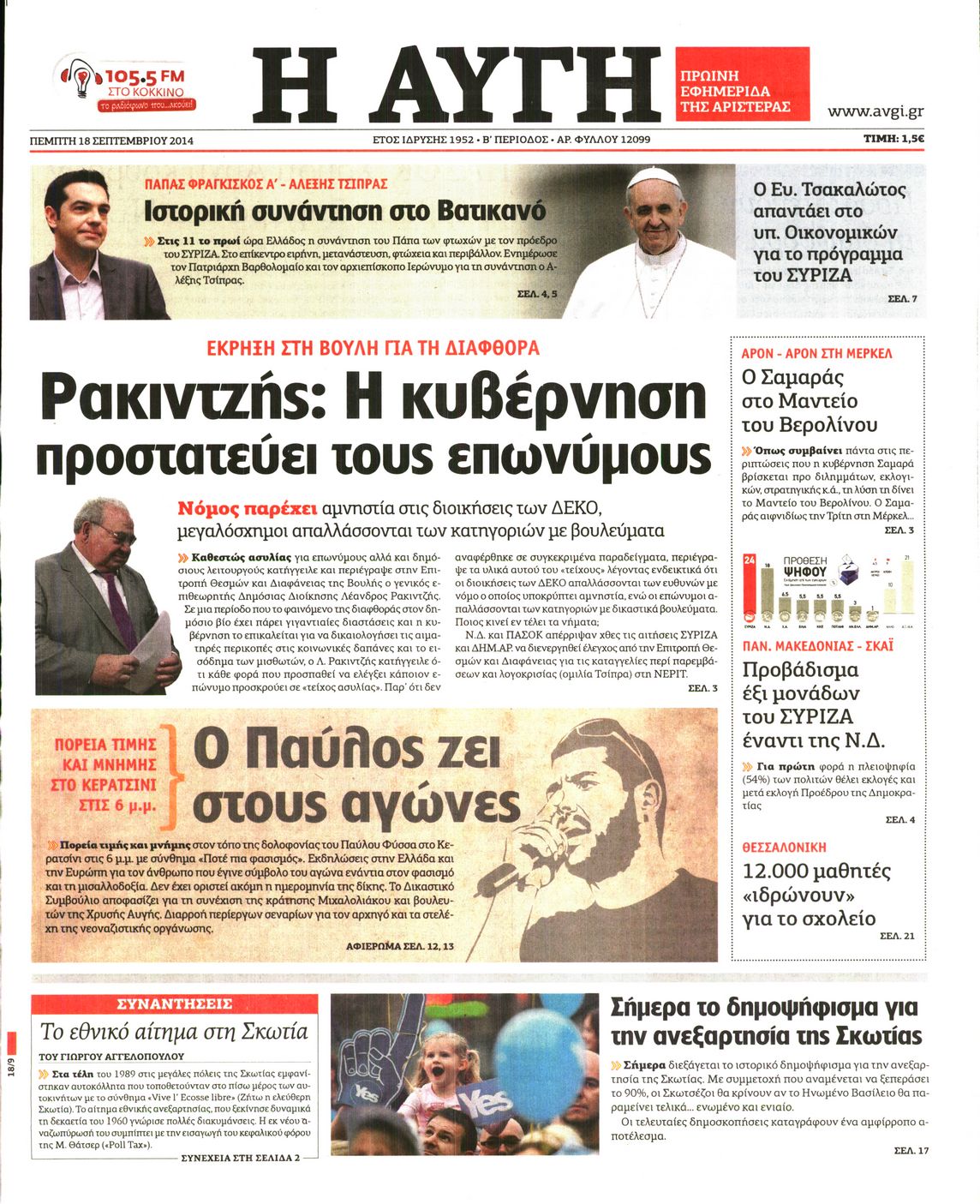 Πέμπτη 18 Σεπτεμβρίου 2014
