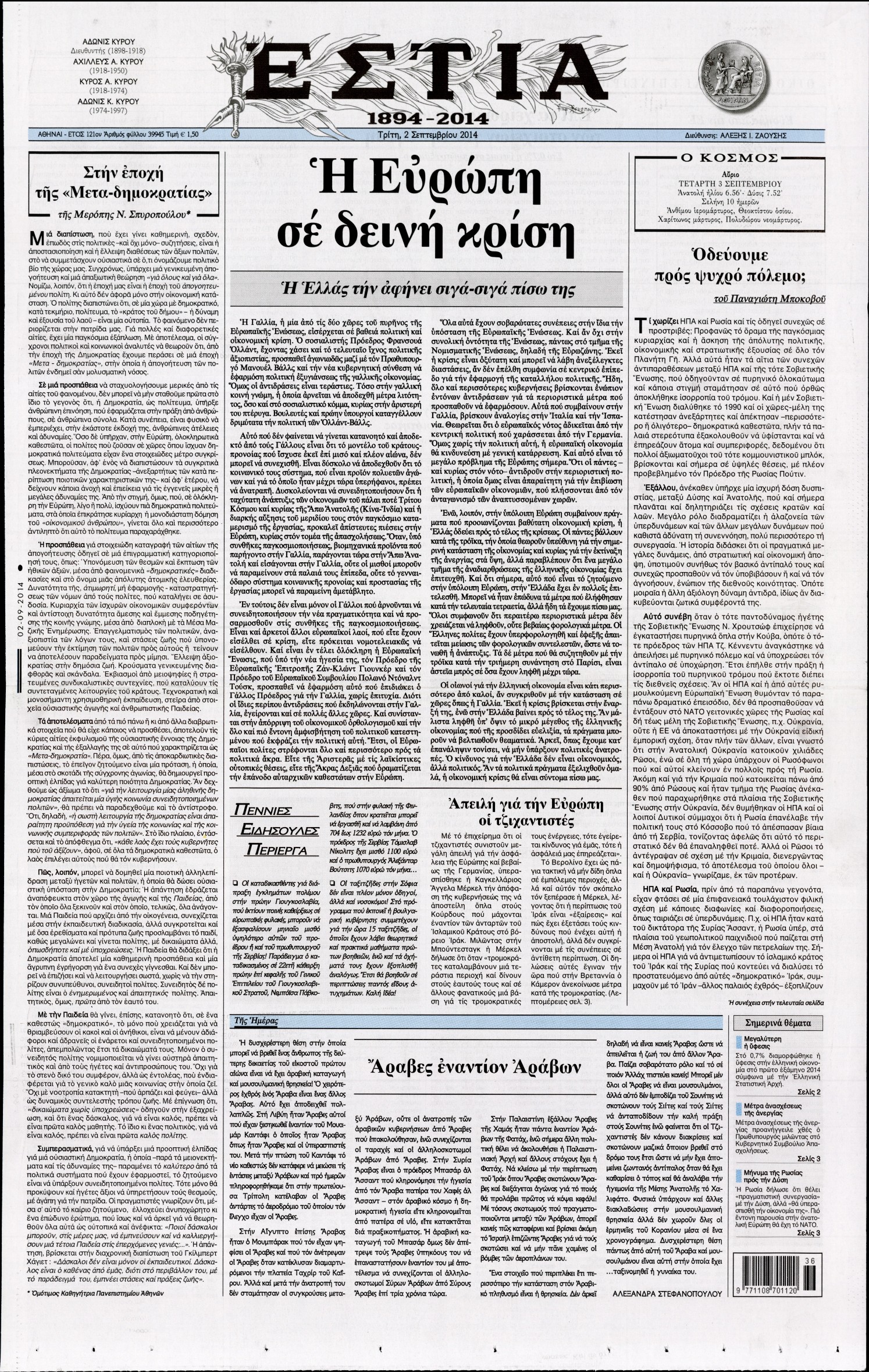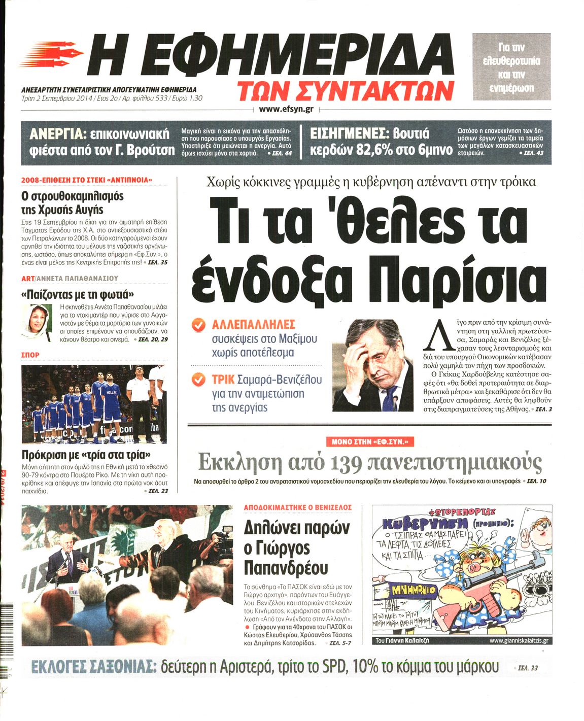 Τρίτη 2 Σεπτεμβρίου 2014