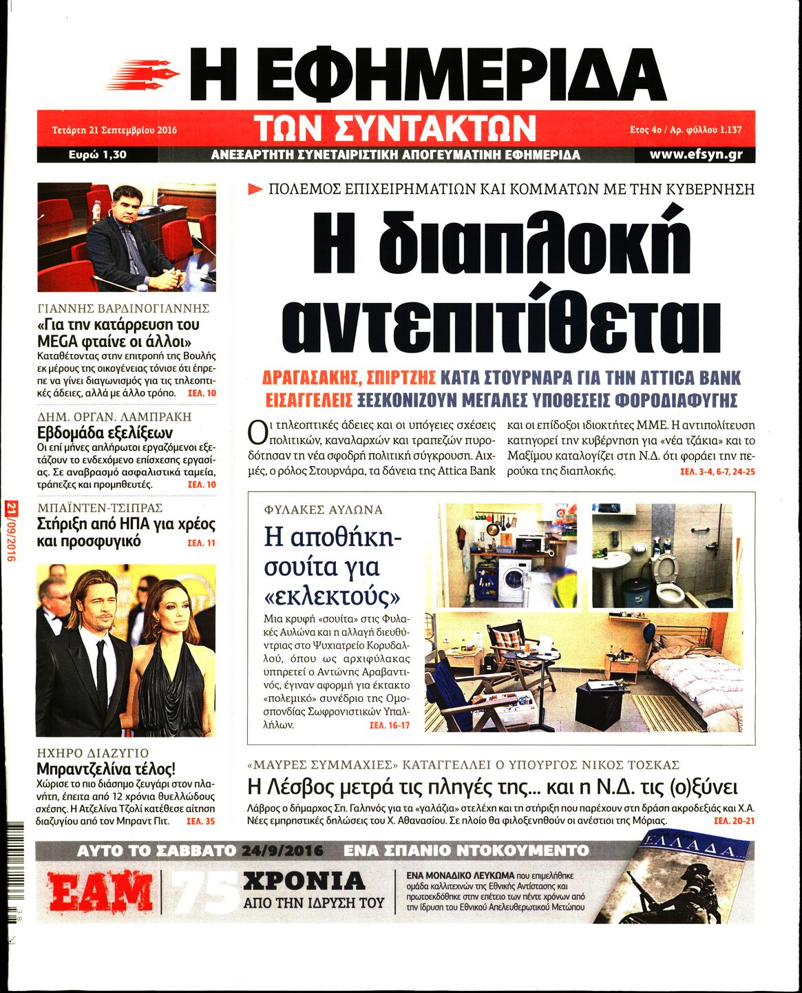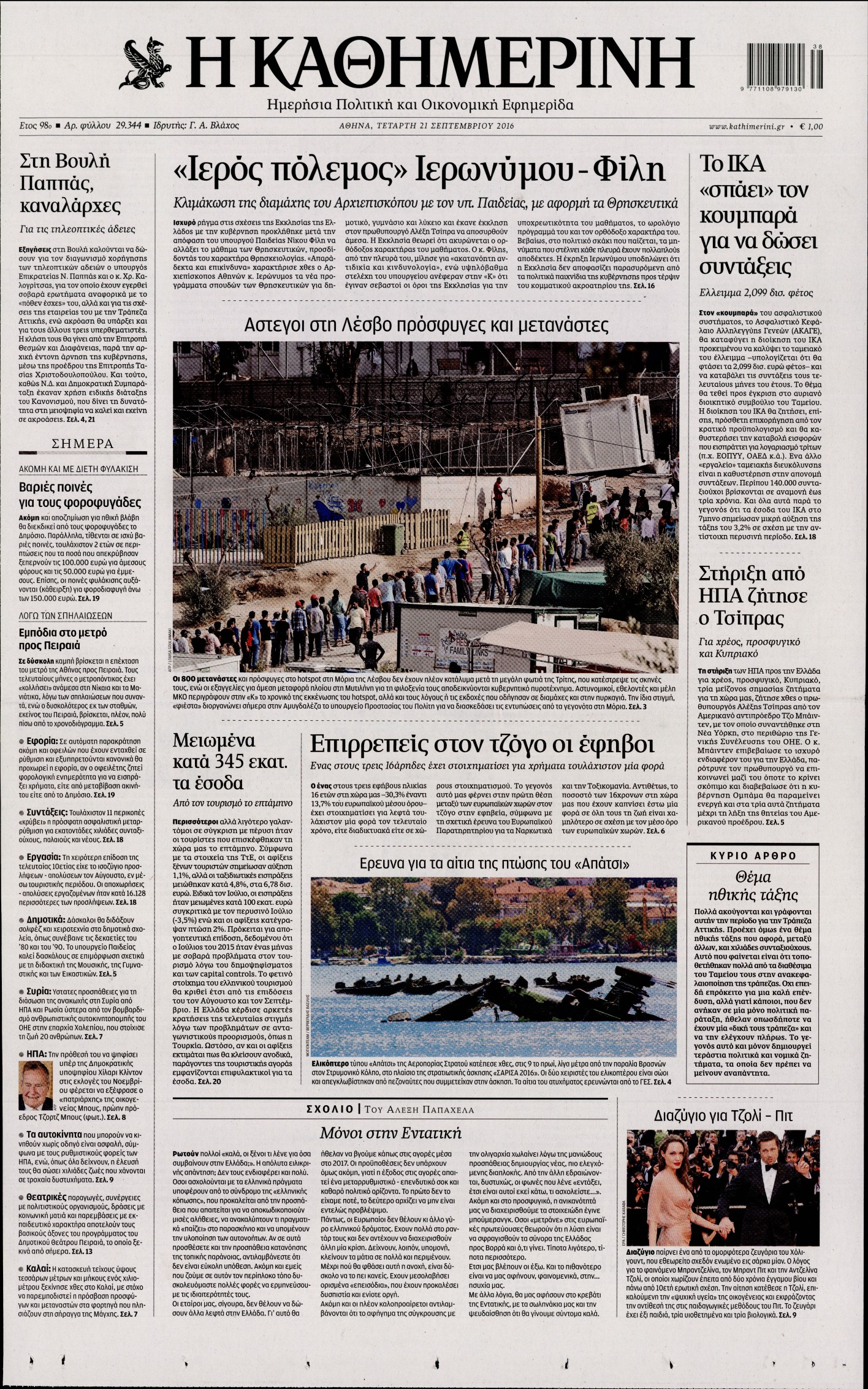 Τετάρτη 21 Σεπτεμβρίου 2016
