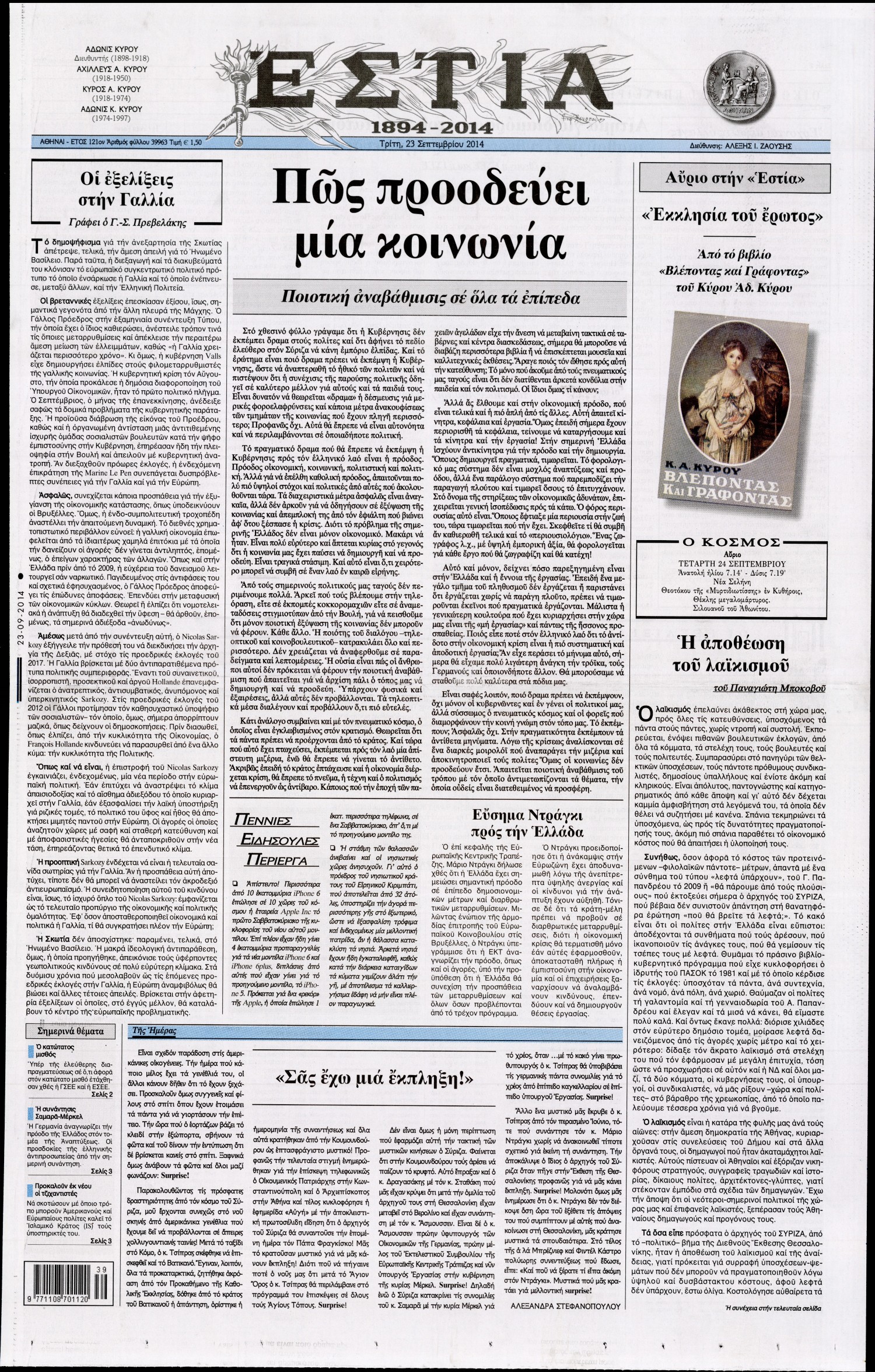 Τρίτη 23 Σεπτεμβρίου 2014