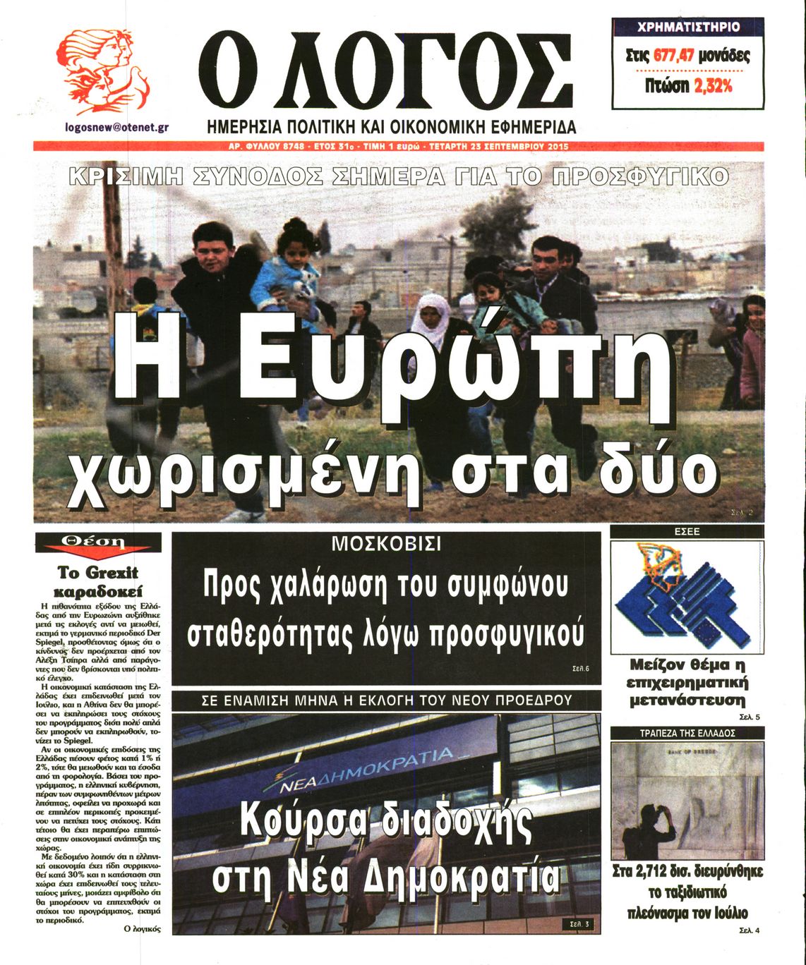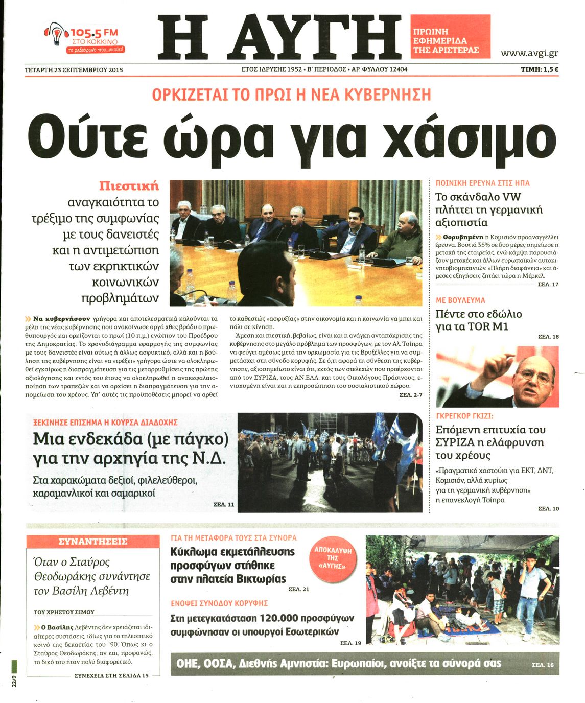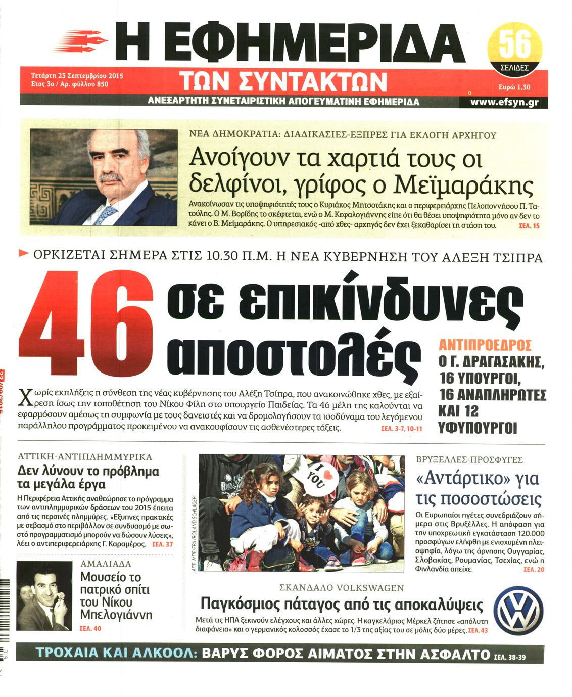 Τετάρτη 23 Σεπτεμβρίου 2015