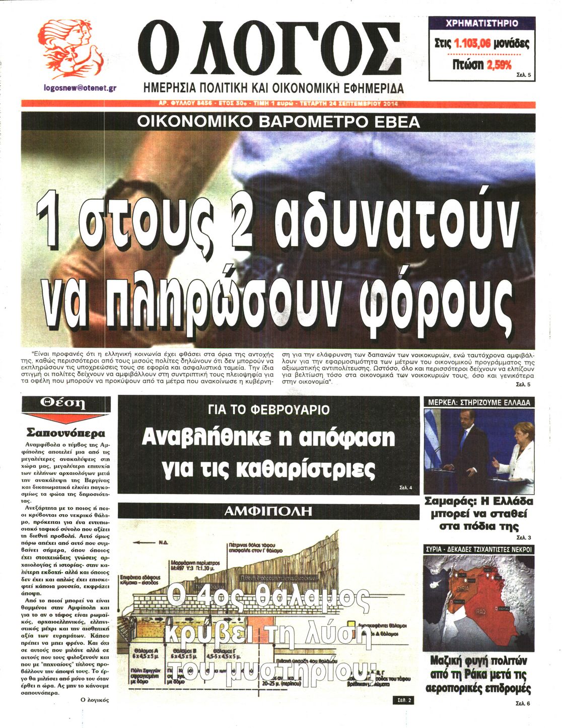 Τετάρτη 24 Σεπτεμβρίου 2014