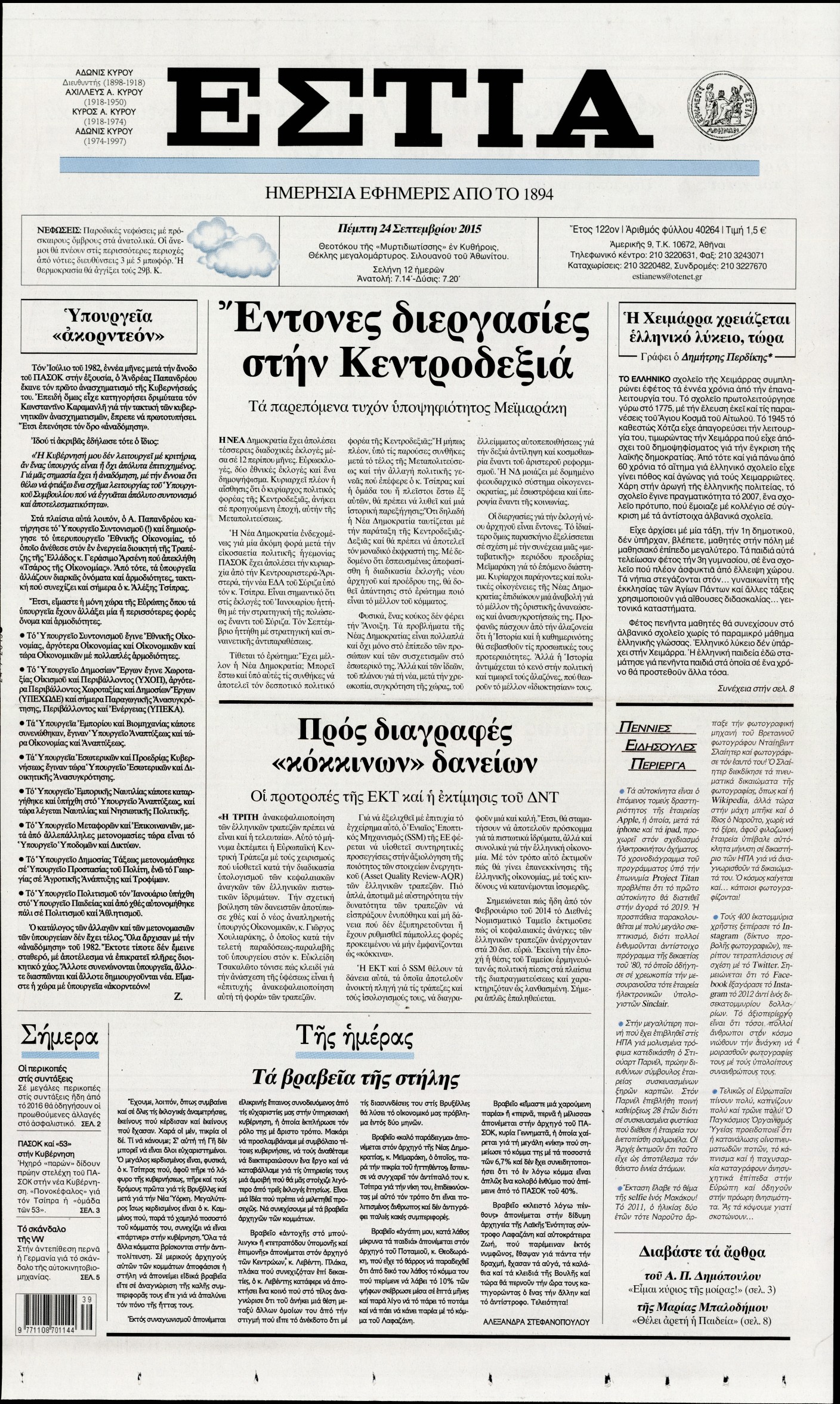 Πέμπτη 24 Σεπτεμβρίου 2015