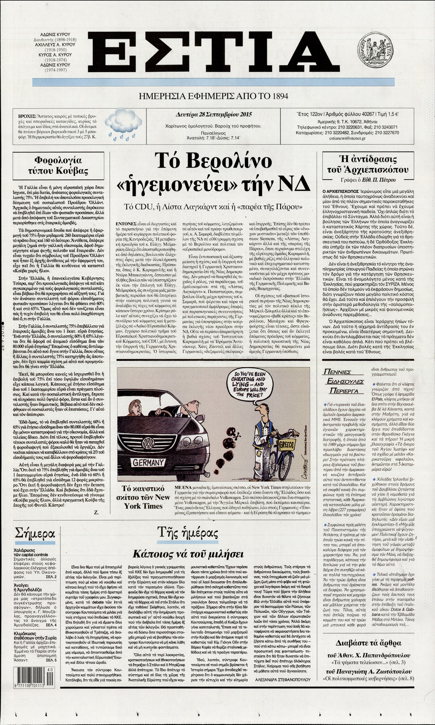 Δευτέρα 28 Σεπτεμβρίου 2015