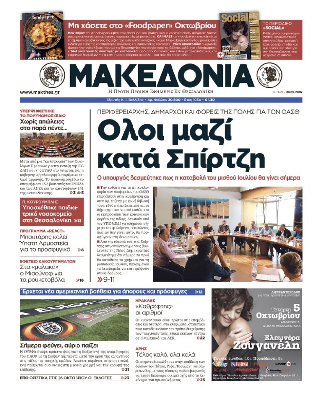 Τετάρτη 28 Σεπτεμβρίου 2016