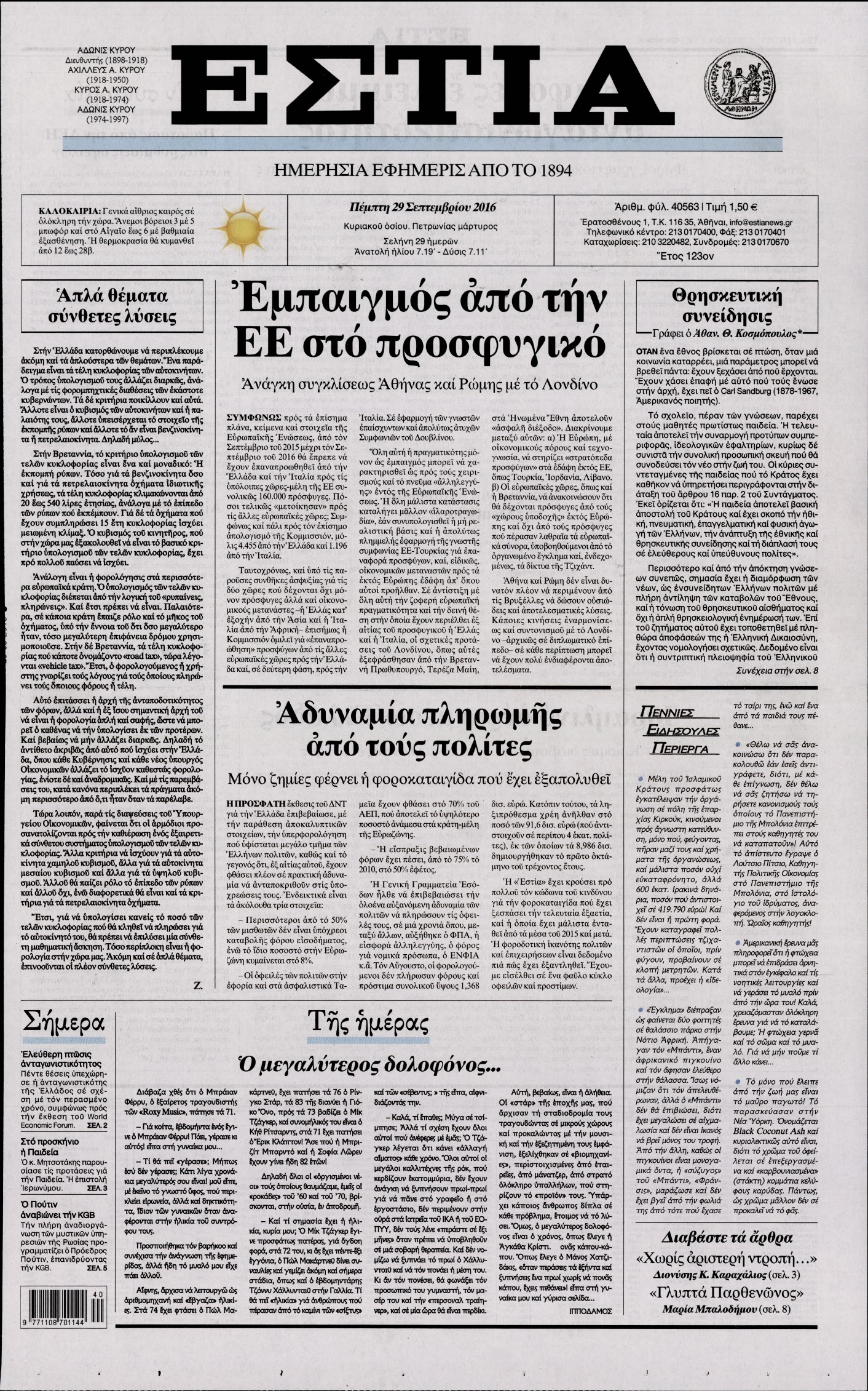 Πέμπτη 29 Σεπτεμβρίου 2016