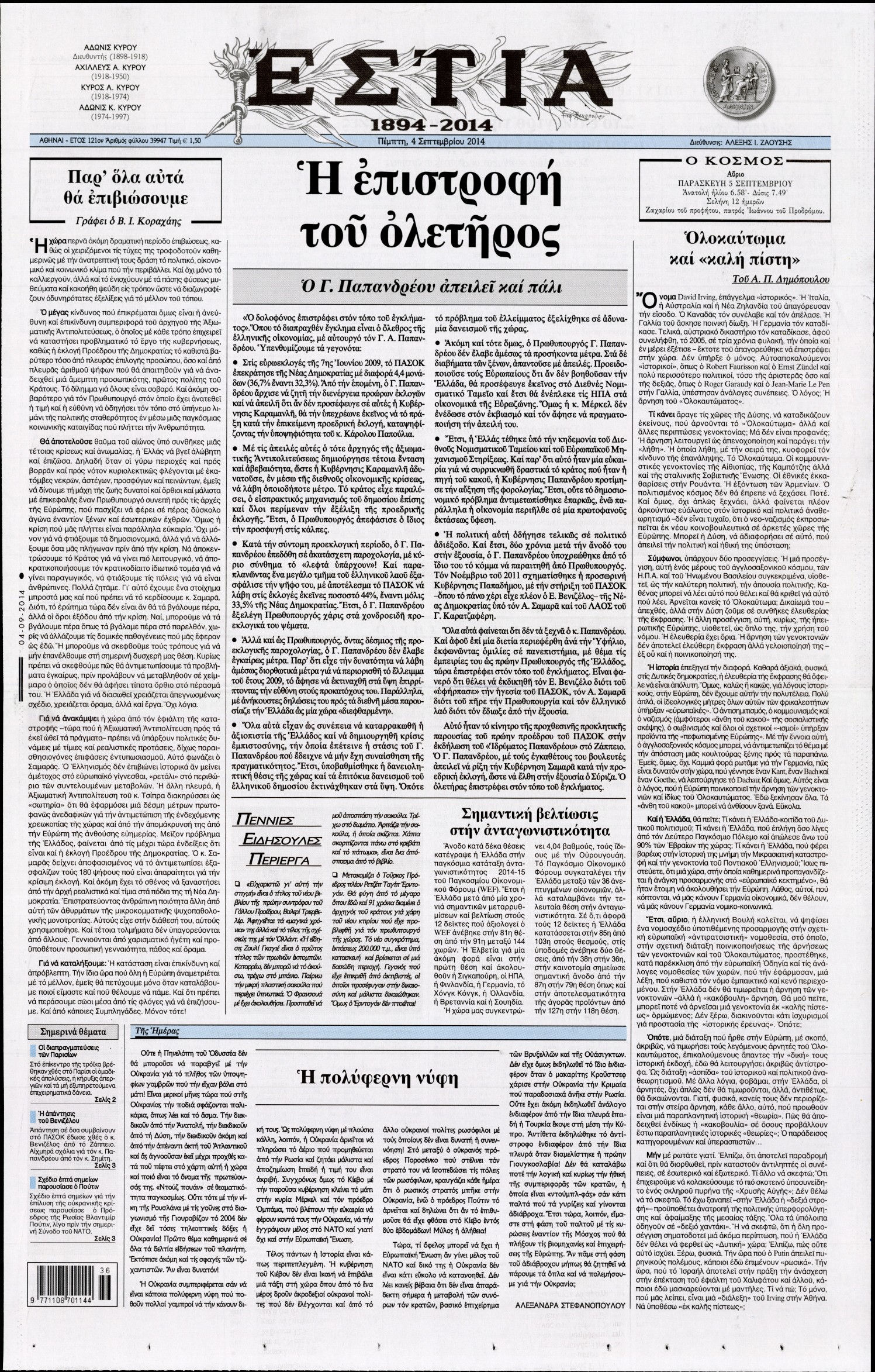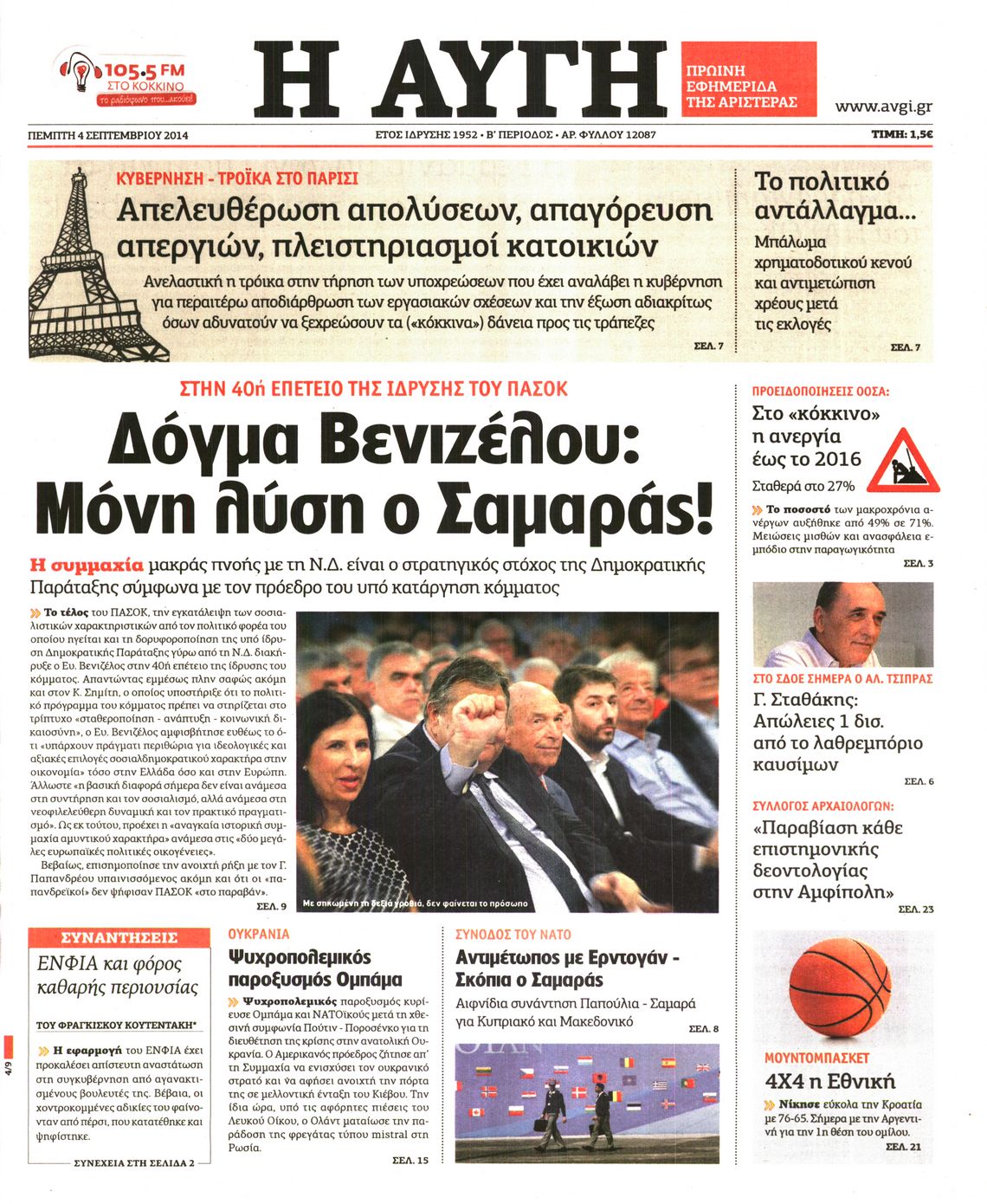 Πέμπτη 4 Σεπτεμβρίου 2014