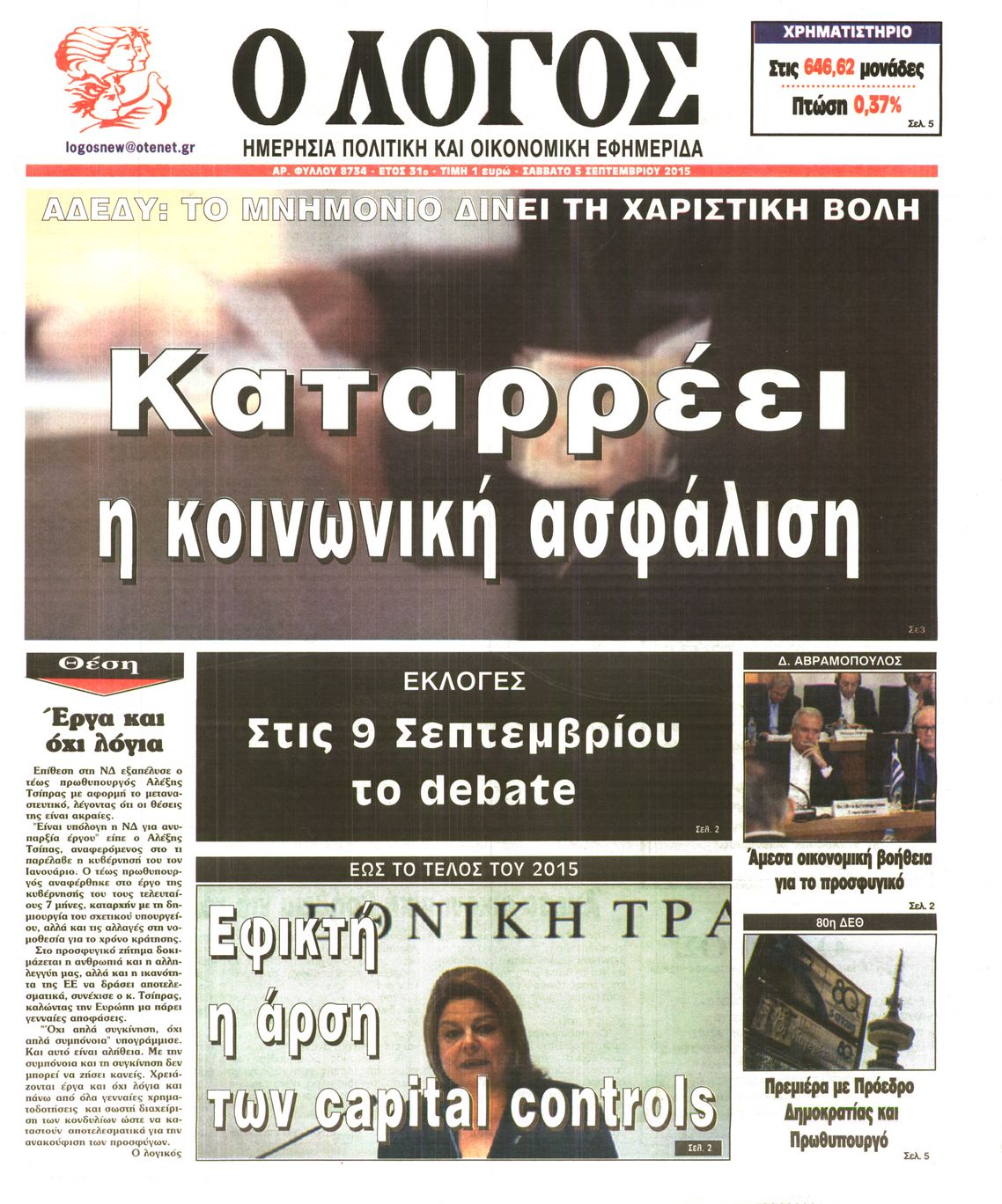 Σάββατο 5 Σεπτεμβρίου 2015
