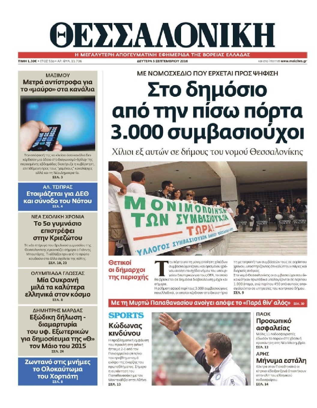 Δευτέρα 5 Σεπτεμβρίου 2016