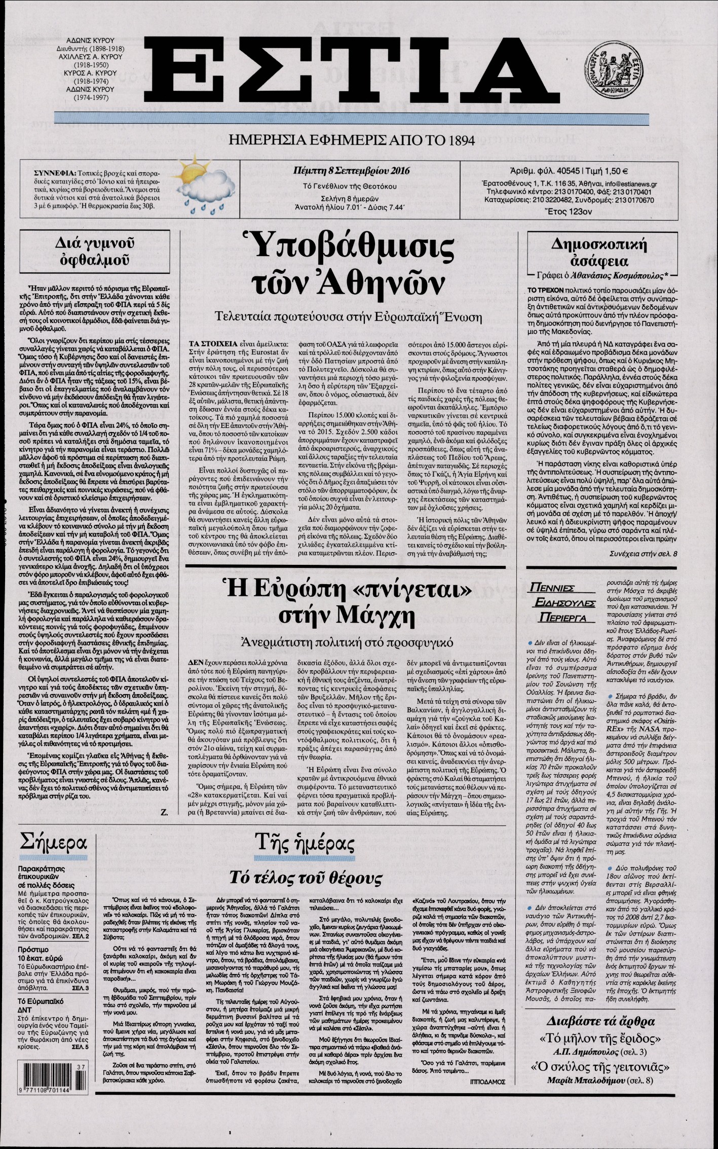 Πέμπτη 8 Σεπτεμβρίου 2016
