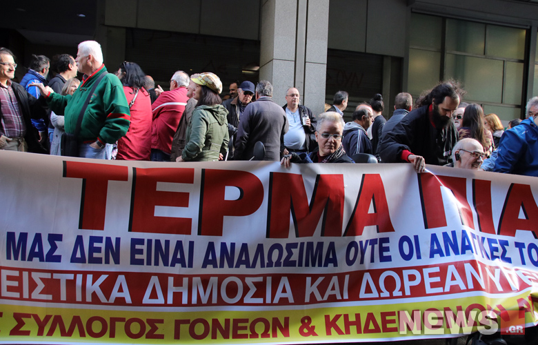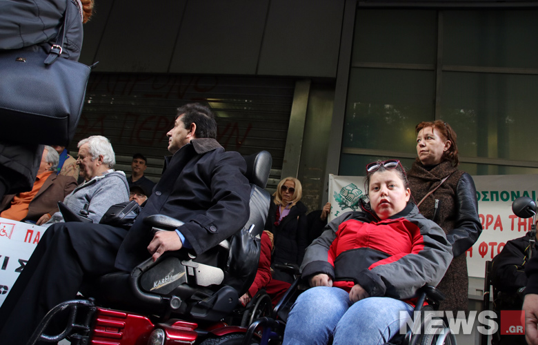 Σε συγκέντρωση διαμαρτυρίας έξω από το υπουργείο Οικονομικών προχώρησαν -όπως ήταν προγραμματισμένο- μέλη της Εθνικής Συνομοσπονδίας Ατόμων με Αναπηρία στην Αττική.