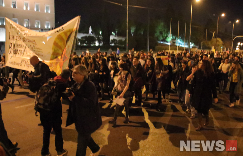 Με το σύνθημα «Δεν είναι γιορτή, είναι Απεργία» γυναίκες από σωματεία, φεμινιστικές οργανώσεις, συλλογικότητες και ομοσπονδίες, του ιδιωτικού και του δημοσίου τομέα, πραγματοποίησαν συγκέντρωση στην Πλ. Κλαυθμώνος στις 1.30 μ.μ. και πορεία προς την Βουλή.