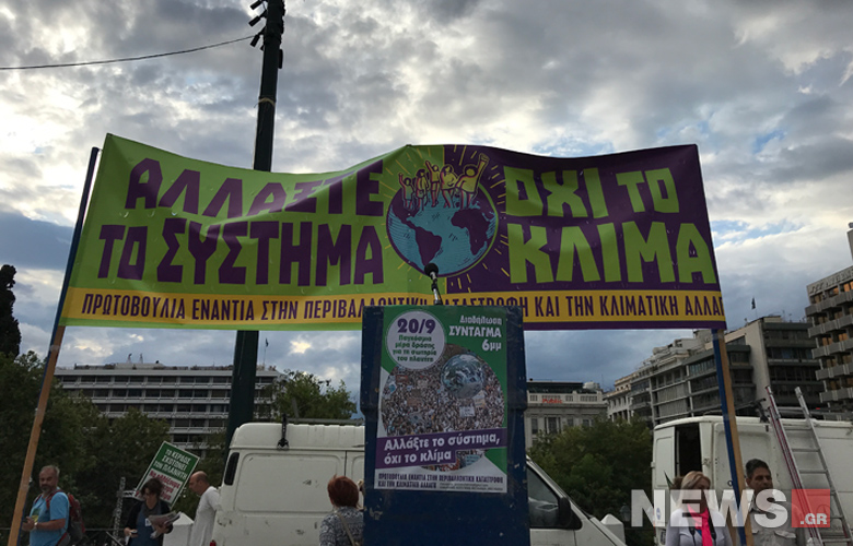 Φορείς, συνδικάτα, οργανώσεις και απλοί πολίτες διαδήλωσαν σήμερα στην πλατεία Συντάγματος κατά της κλιματικής αλλαγής.